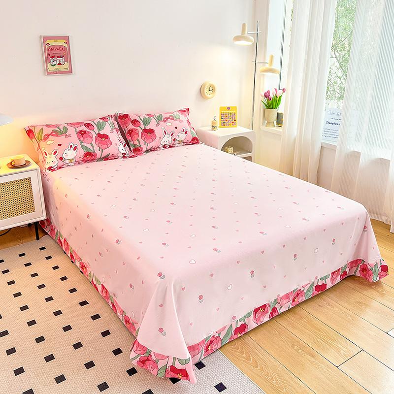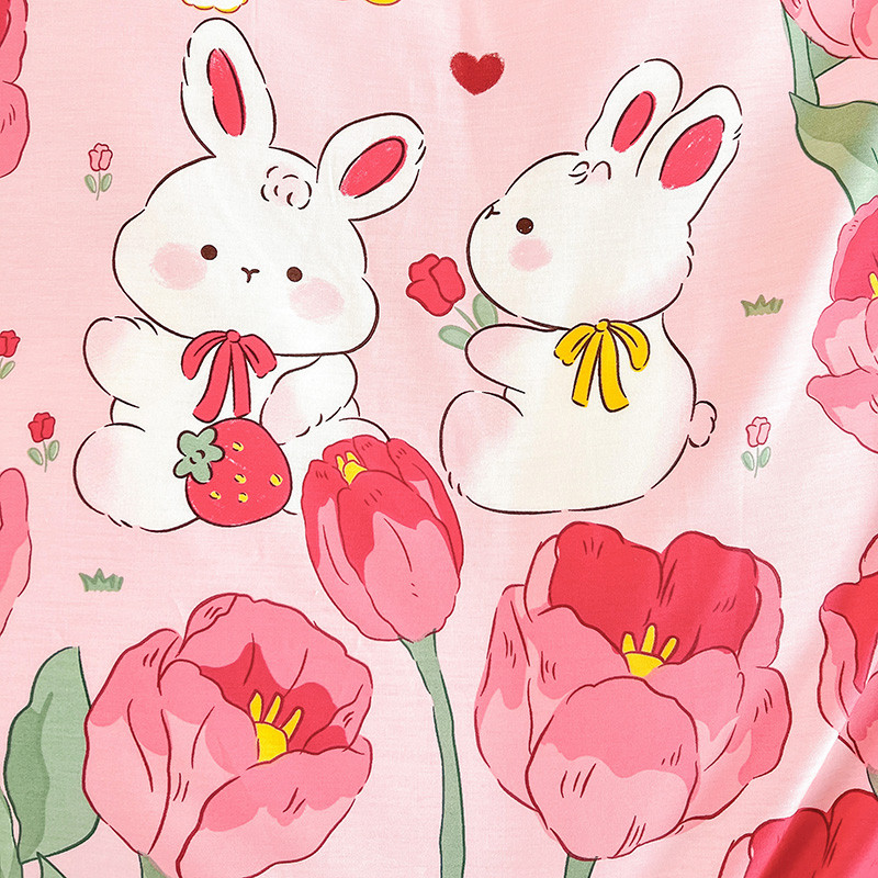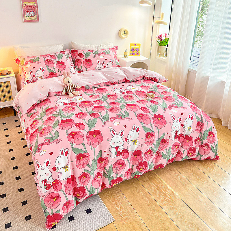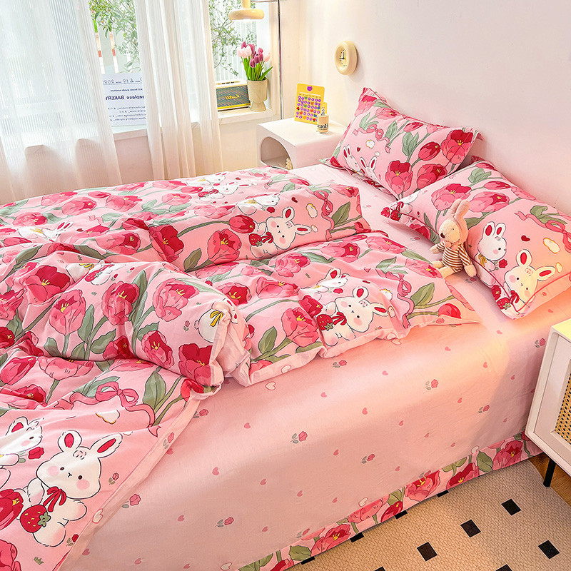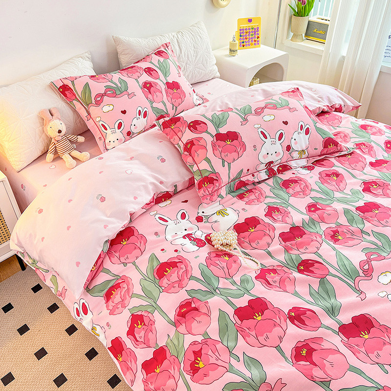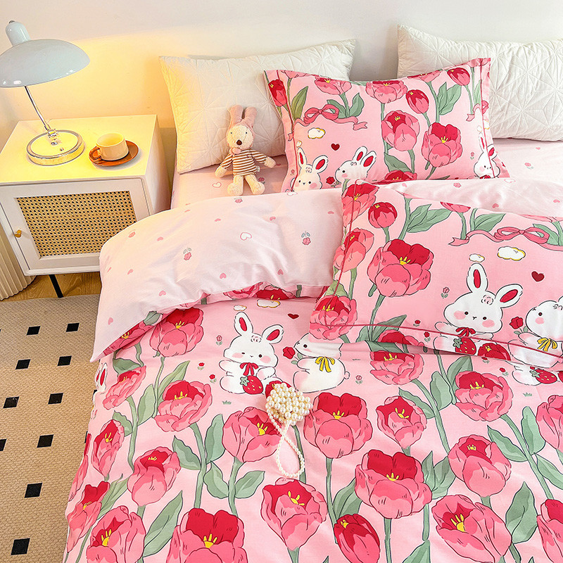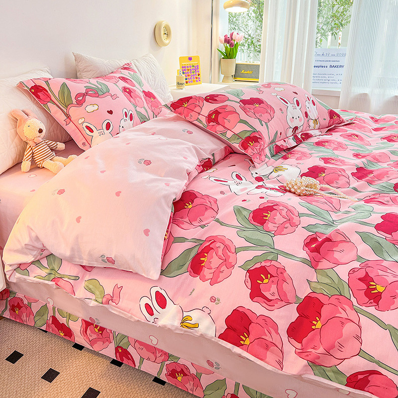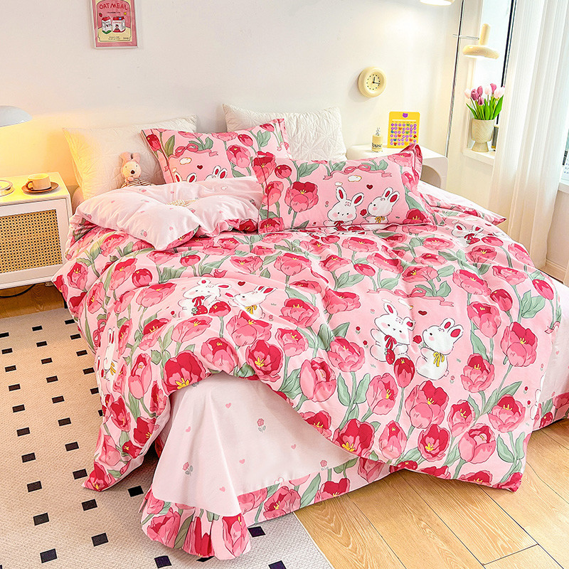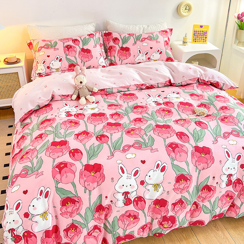 乐童2024新款网红直播爆款吊边+一字绣工艺款四件套(六)郁金香小兔