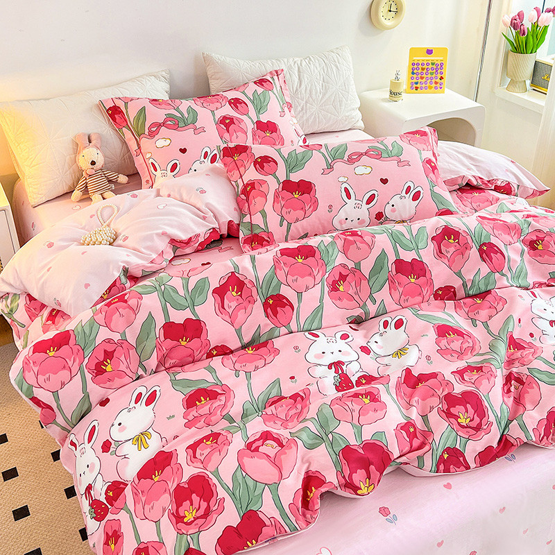 商品名称:乐童2024新款网红直播爆款吊边+一字绣工艺款四件套(六)郁金香小兔