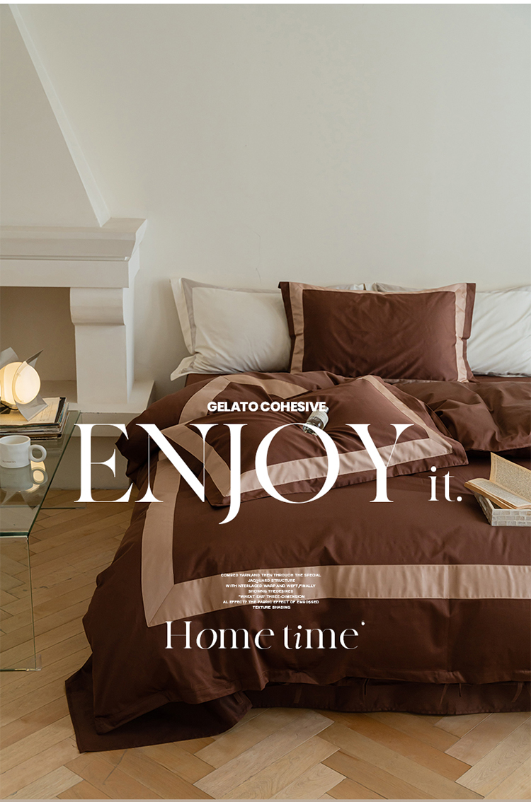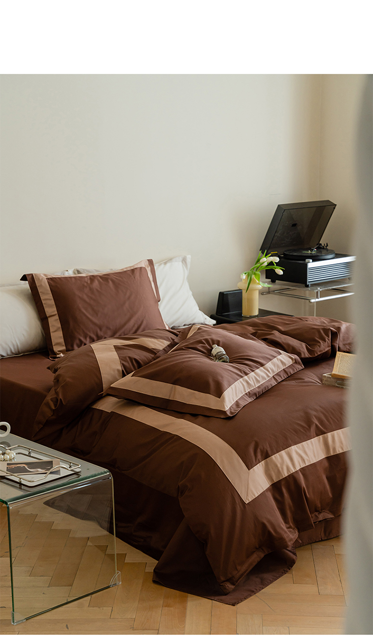 华超针织 2023新款100支贡缎贴边四件套 巧克力