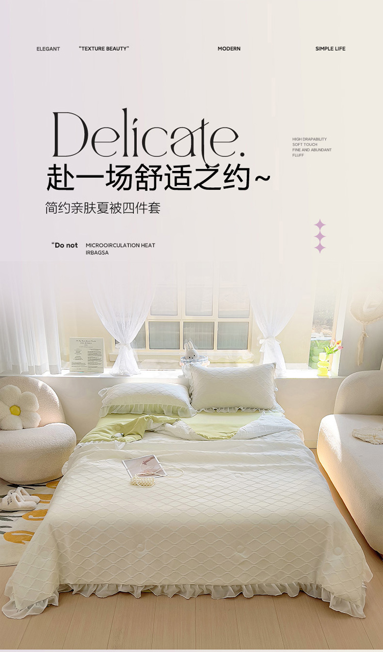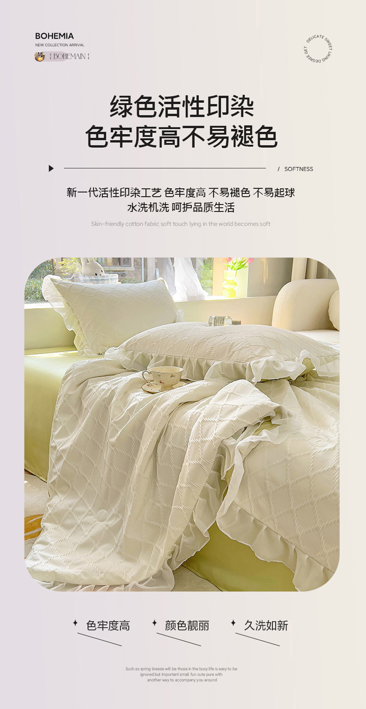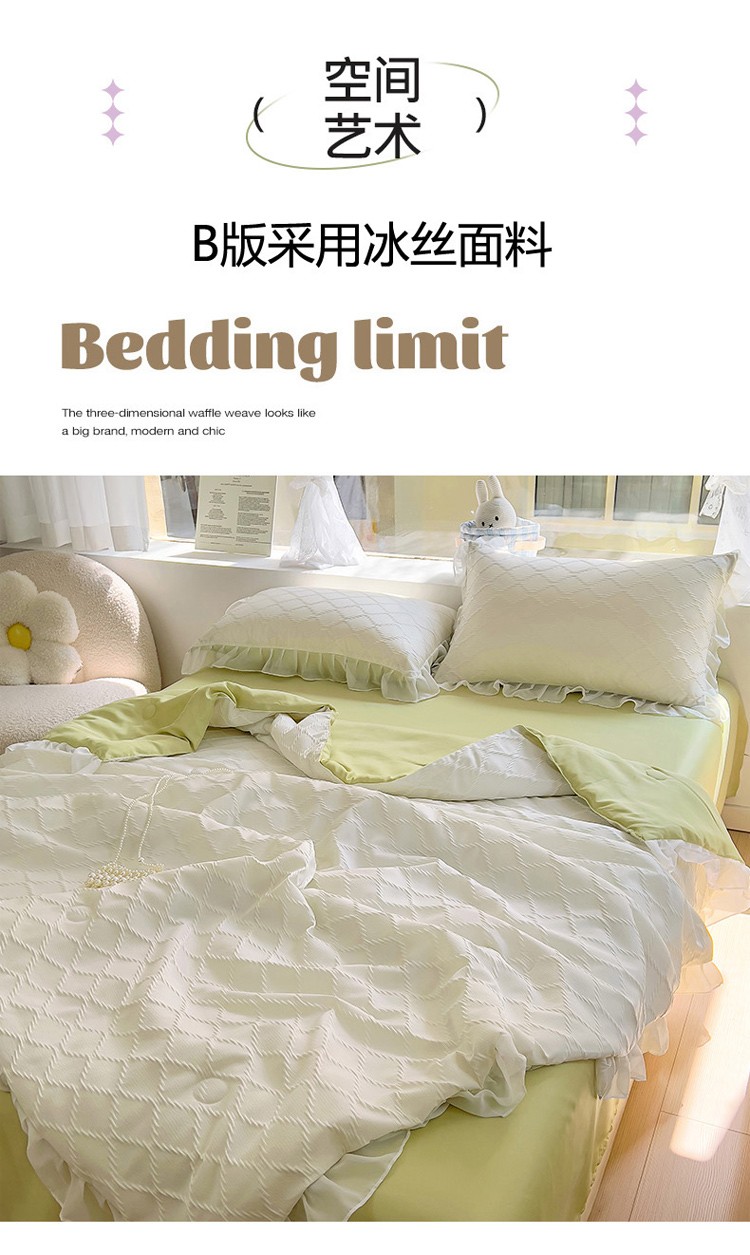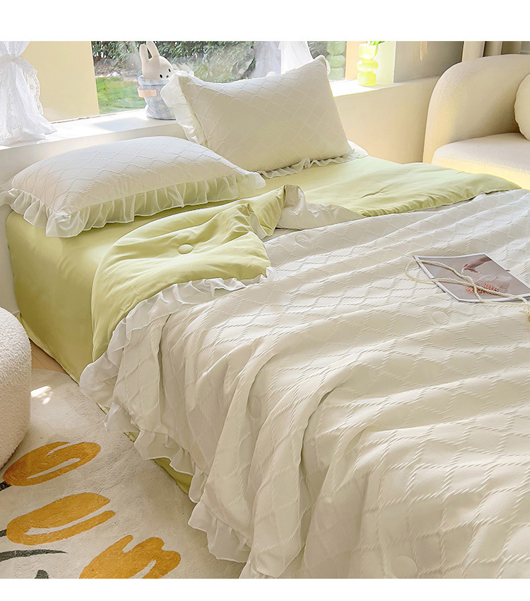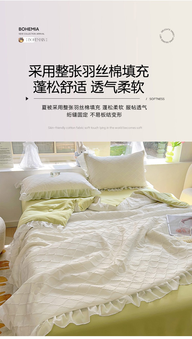 商品名称:沐慕 2023新款立体双层纱提花夏被四件套 芝芝奶绿