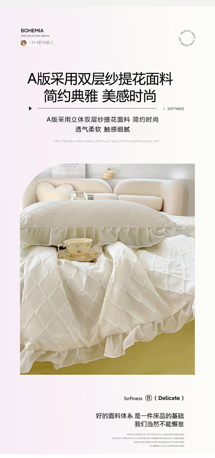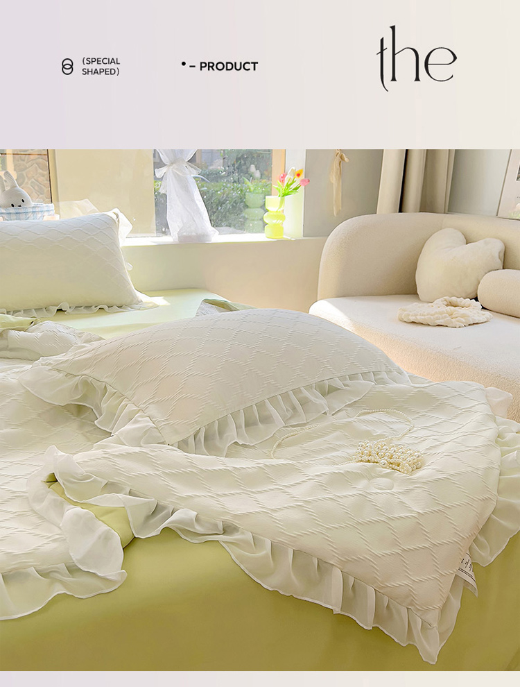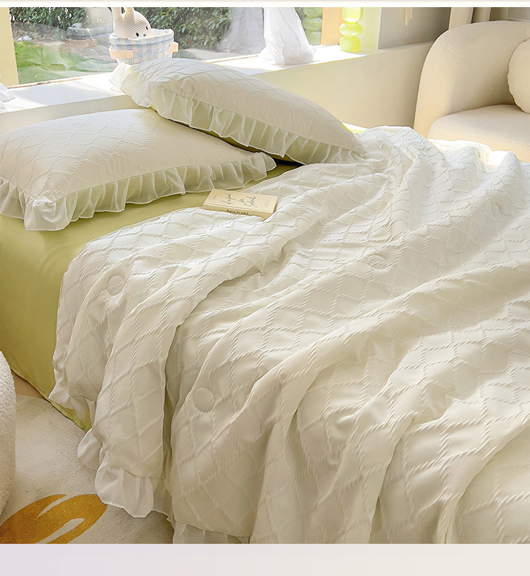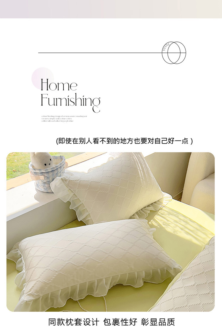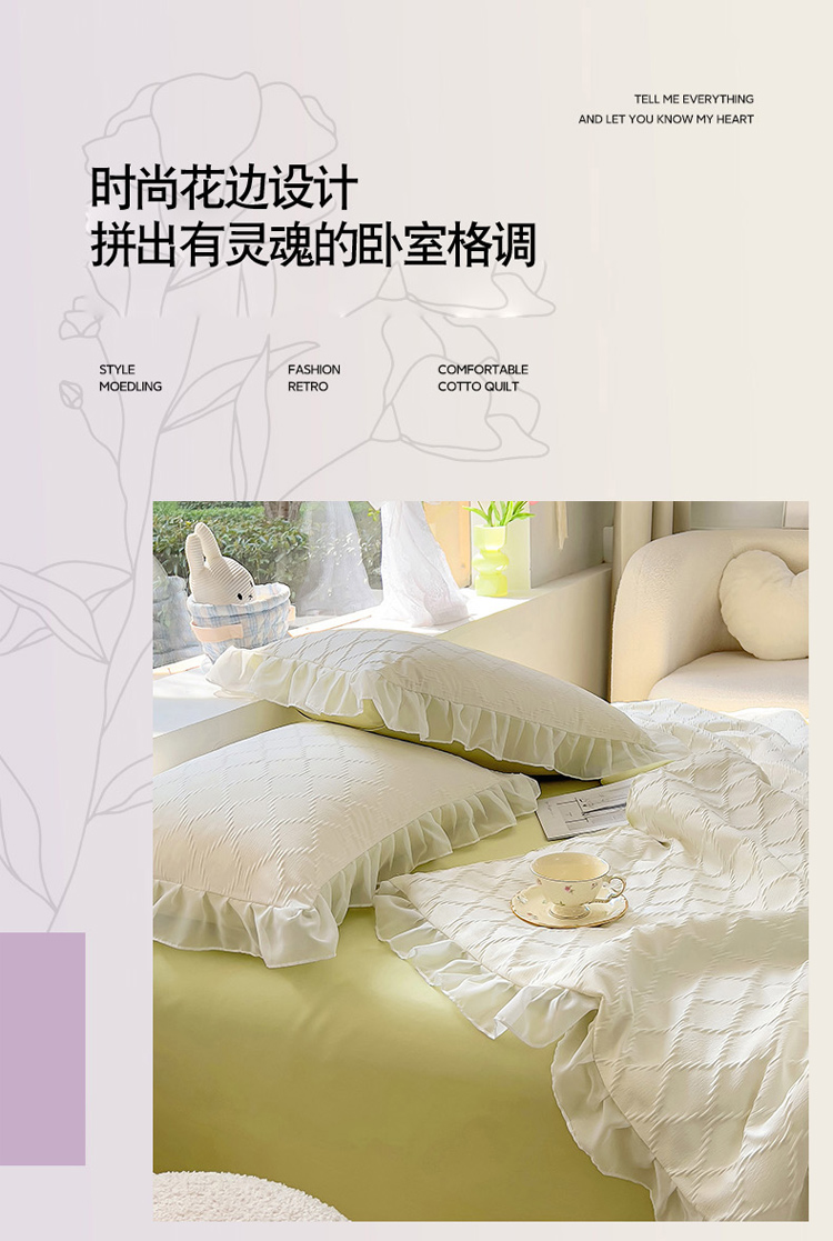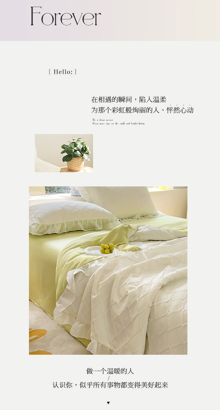 商品名称:沐慕 2023新款立体双层纱提花夏被四件套 芝芝奶绿