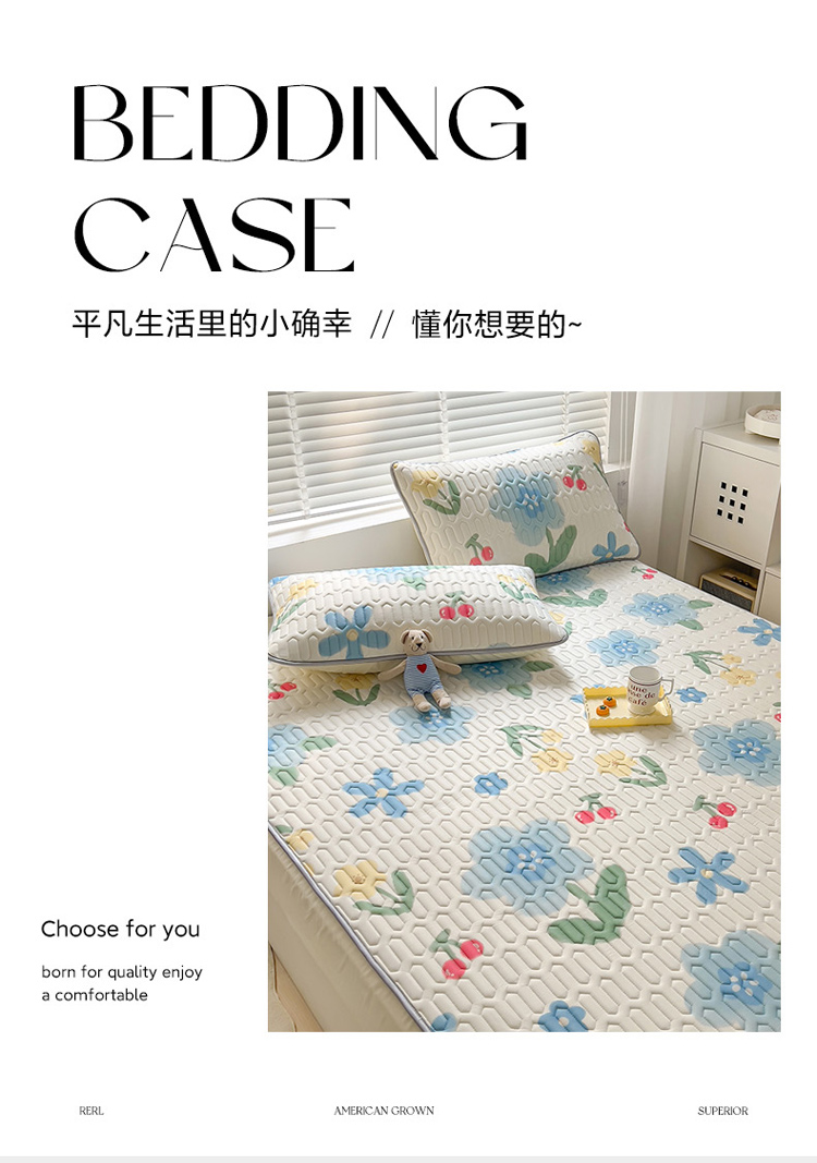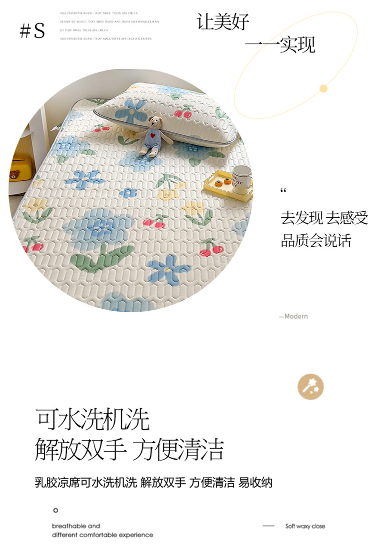 商品名称:沐慕 2023新款小清新床笠款乳胶凉席 花海