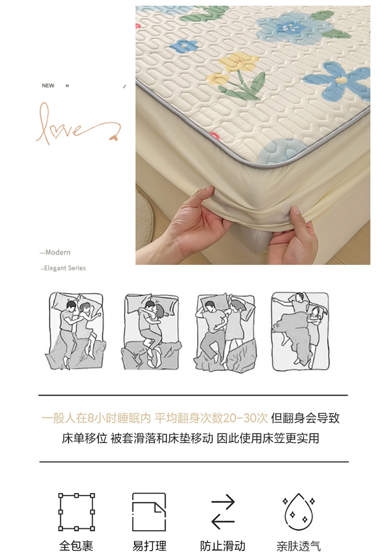 沐慕 2023新款小清新床笠款乳胶凉席 花海