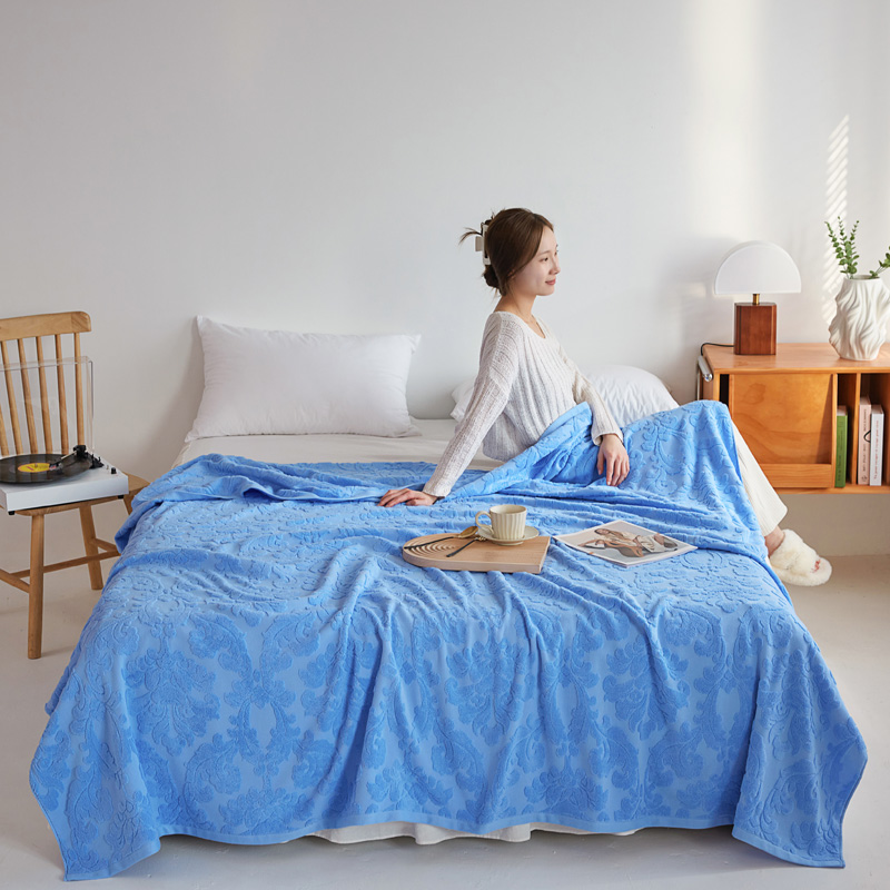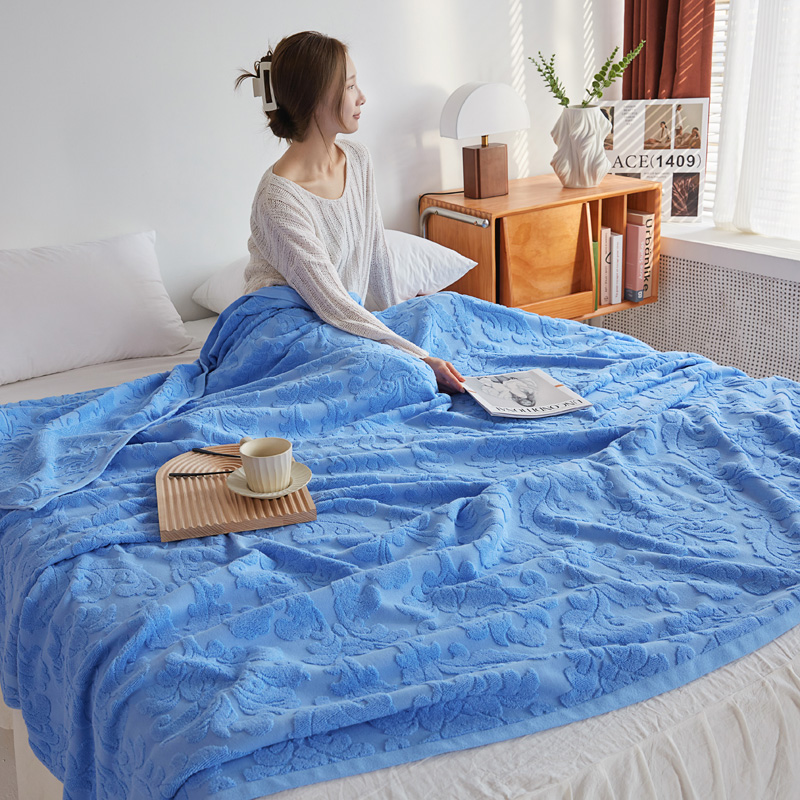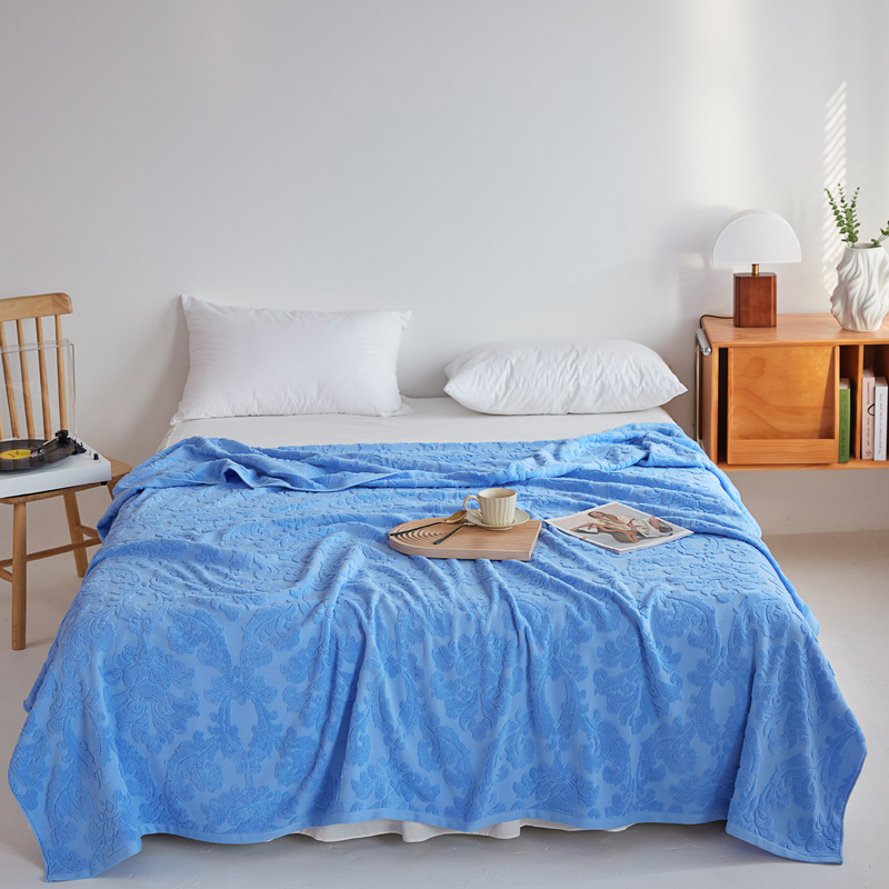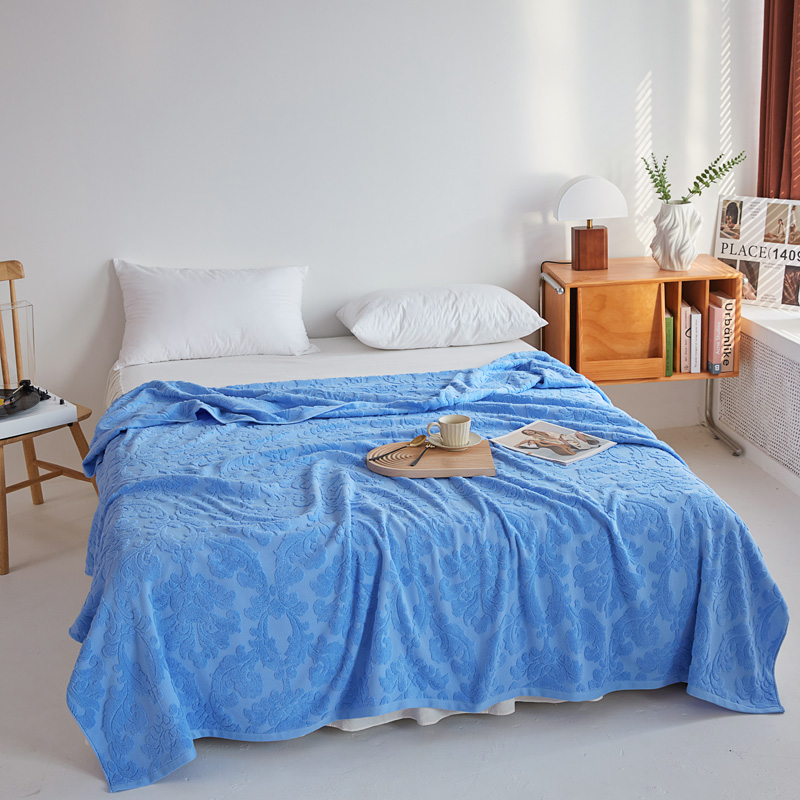 (总)乐家毛巾被(工厂自产自销) 2024新款全棉镂空毯系列,蓝色,浅灰色,深灰色,青色,粉色,黄色