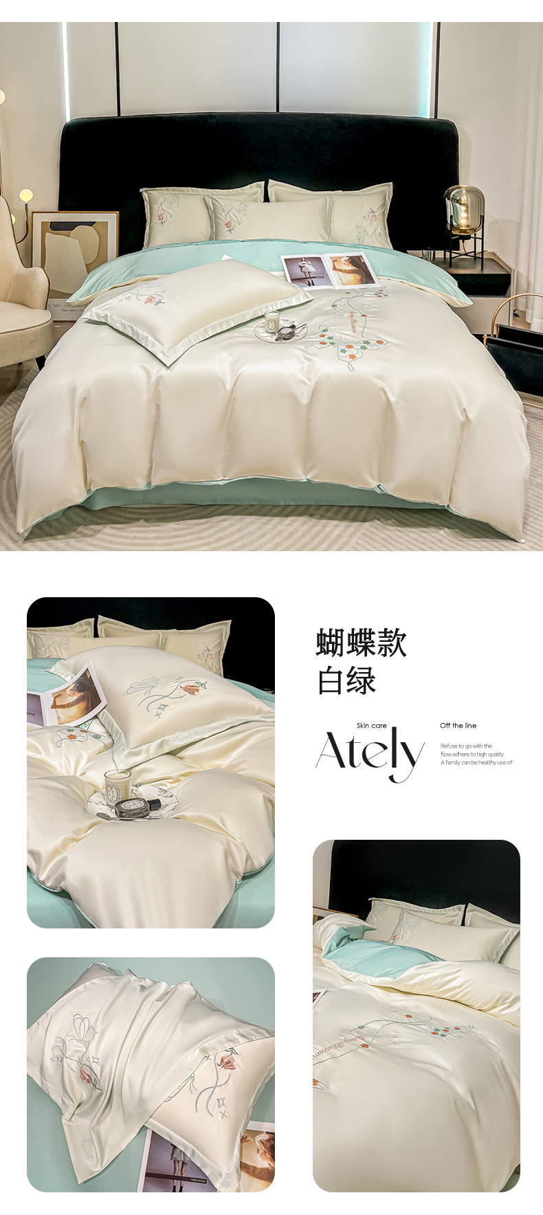 二八年华 2023新款水洗真丝刺绣四件套蝴蝶款系列 蝴蝶款-白绿