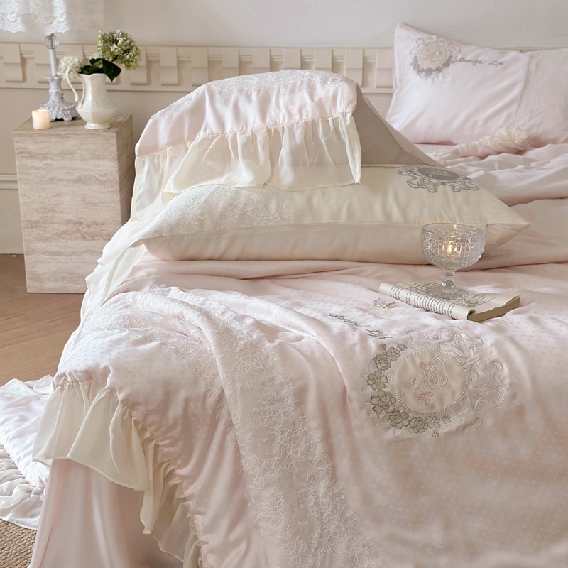 (总)MIU缪家居 2025春夏新款60支兰精天丝四件套-爱莎,爱莎-浅粉,爱莎-乳白