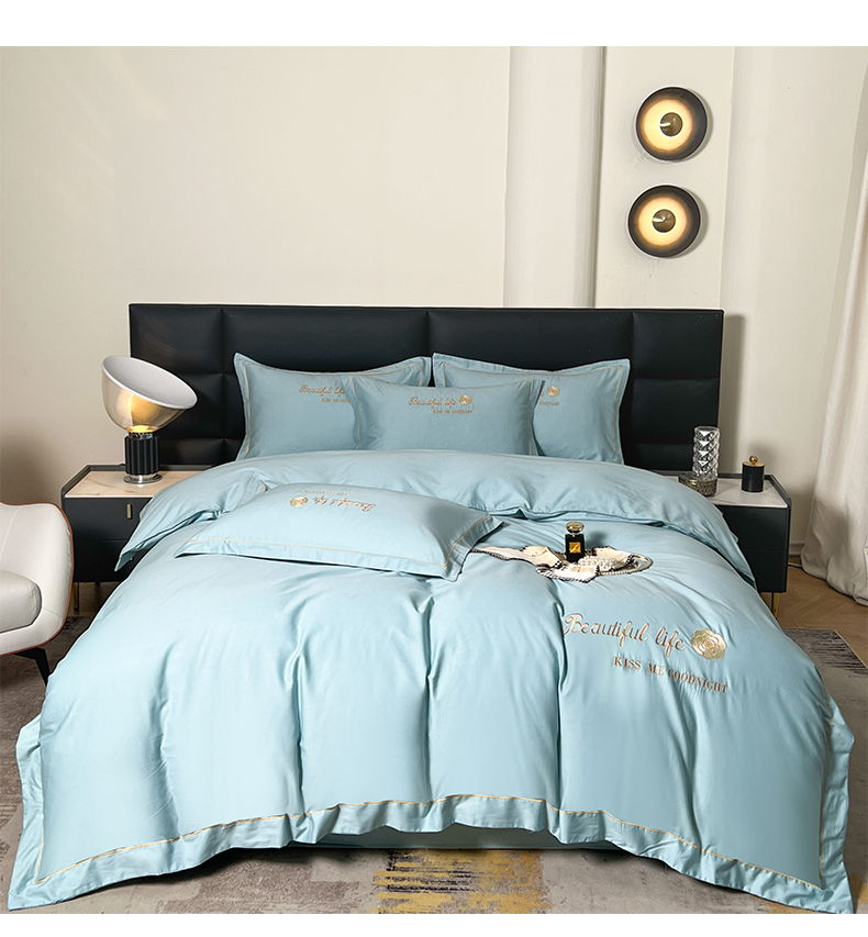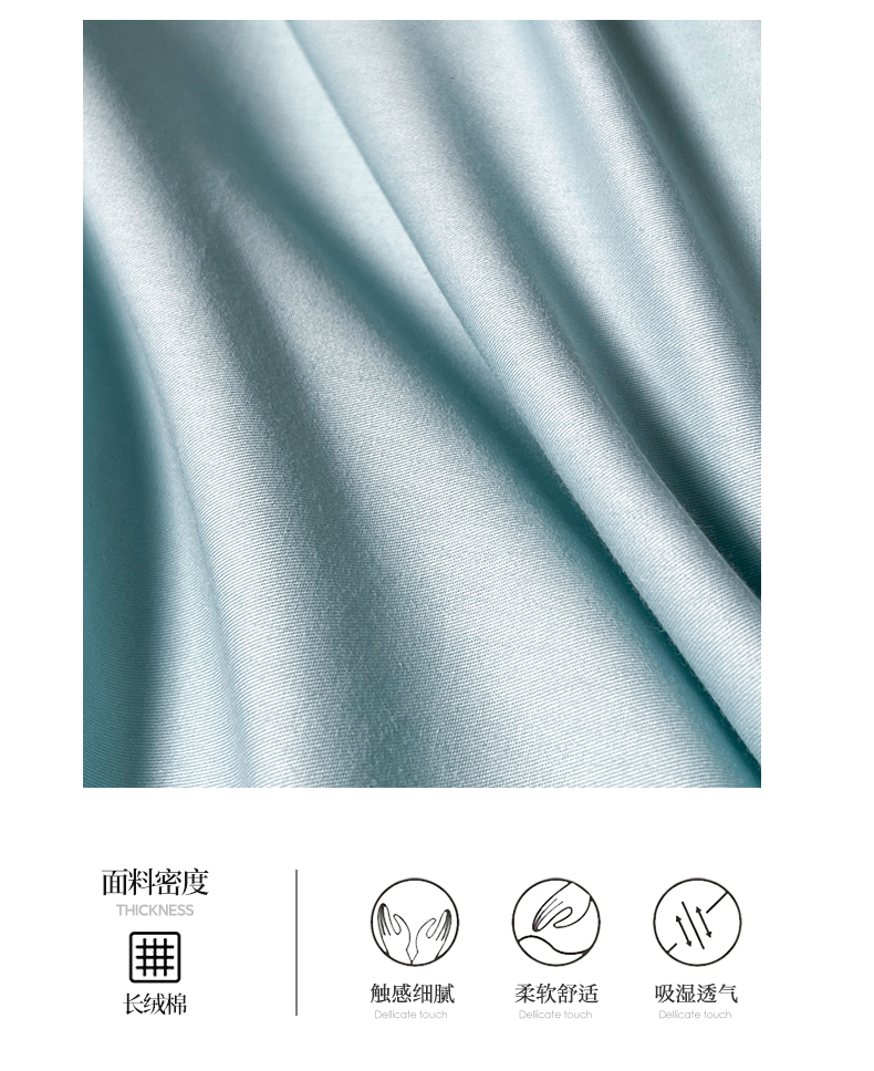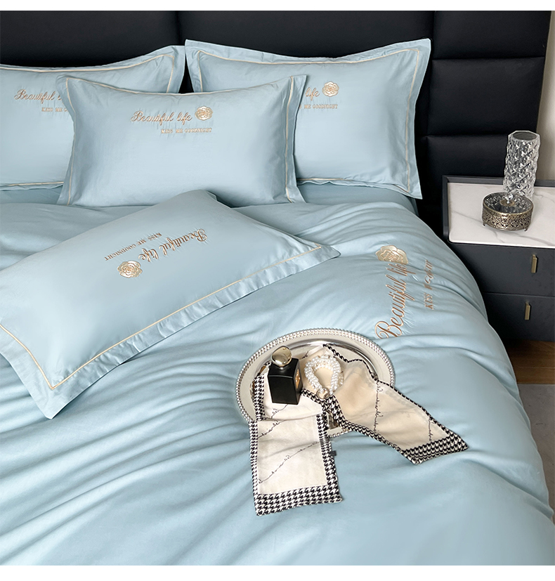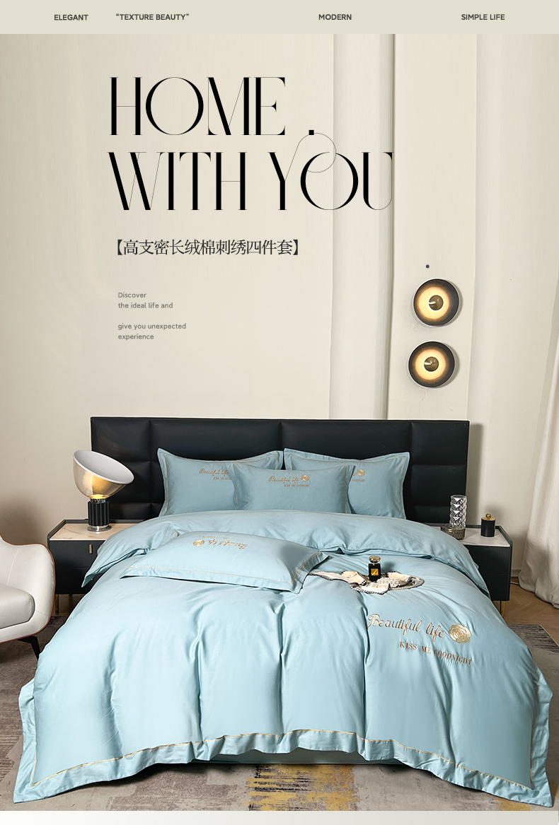 盛馨2023新款轻奢高支高密长绒棉全棉床单床笠刺绣四件套 BF-淡蓝