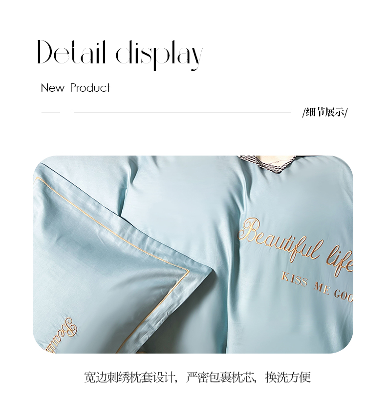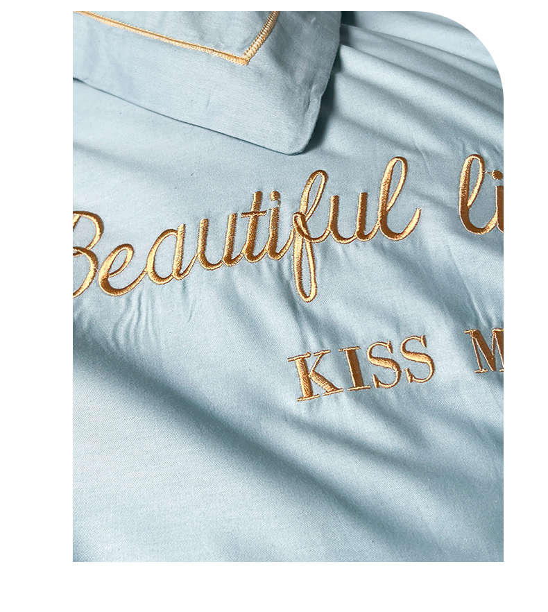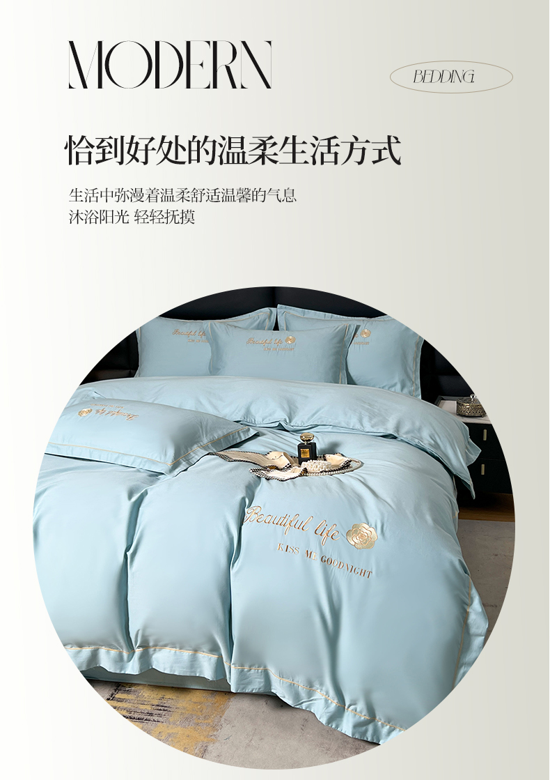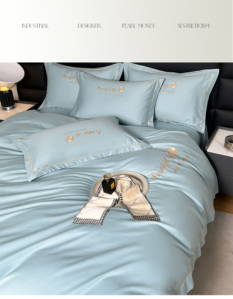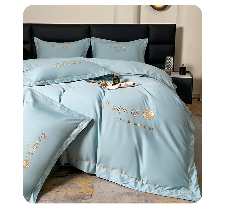 盛馨2023新款轻奢高支高密长绒棉全棉床单床笠刺绣四件套 BF-淡蓝