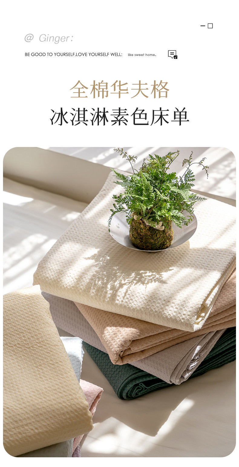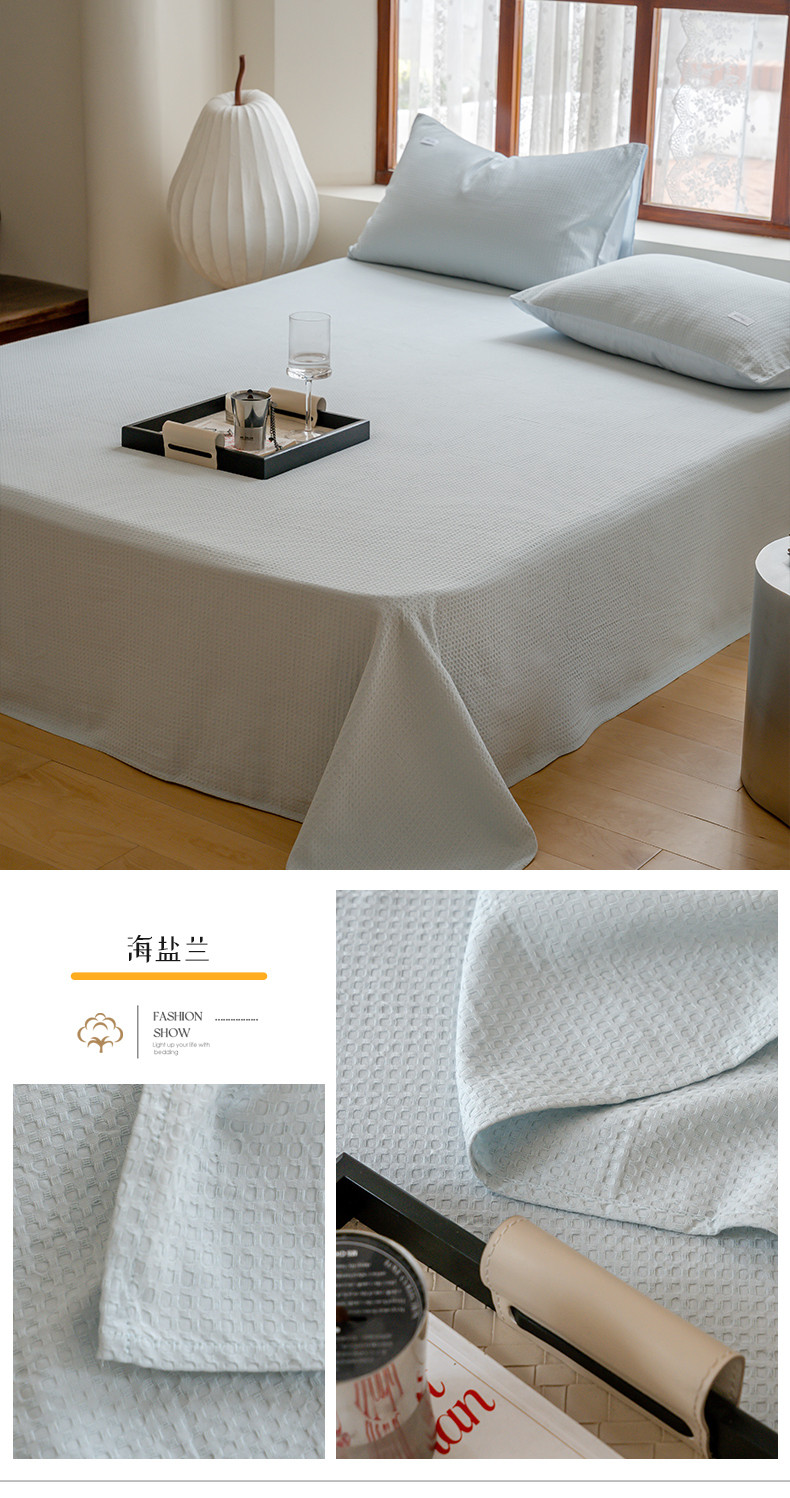 商品名称:时光里 2023新款60支全棉华夫格单品床单 海盐兰