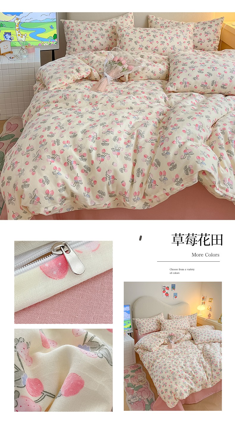 川悦生活 2023新款全棉双层纱印花四件套 草莓花田