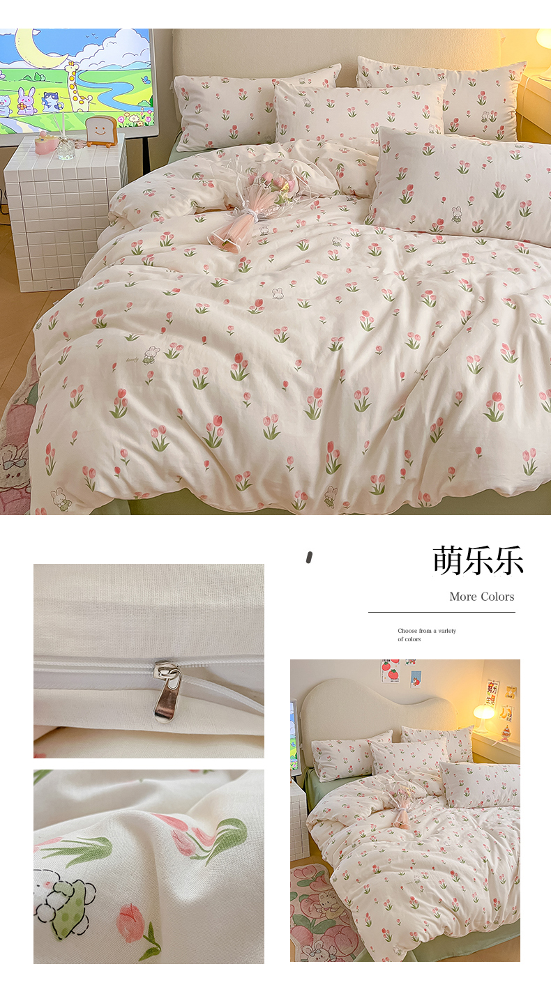 川悦生活 2023新款全棉双层纱印花四件套 萌乐乐