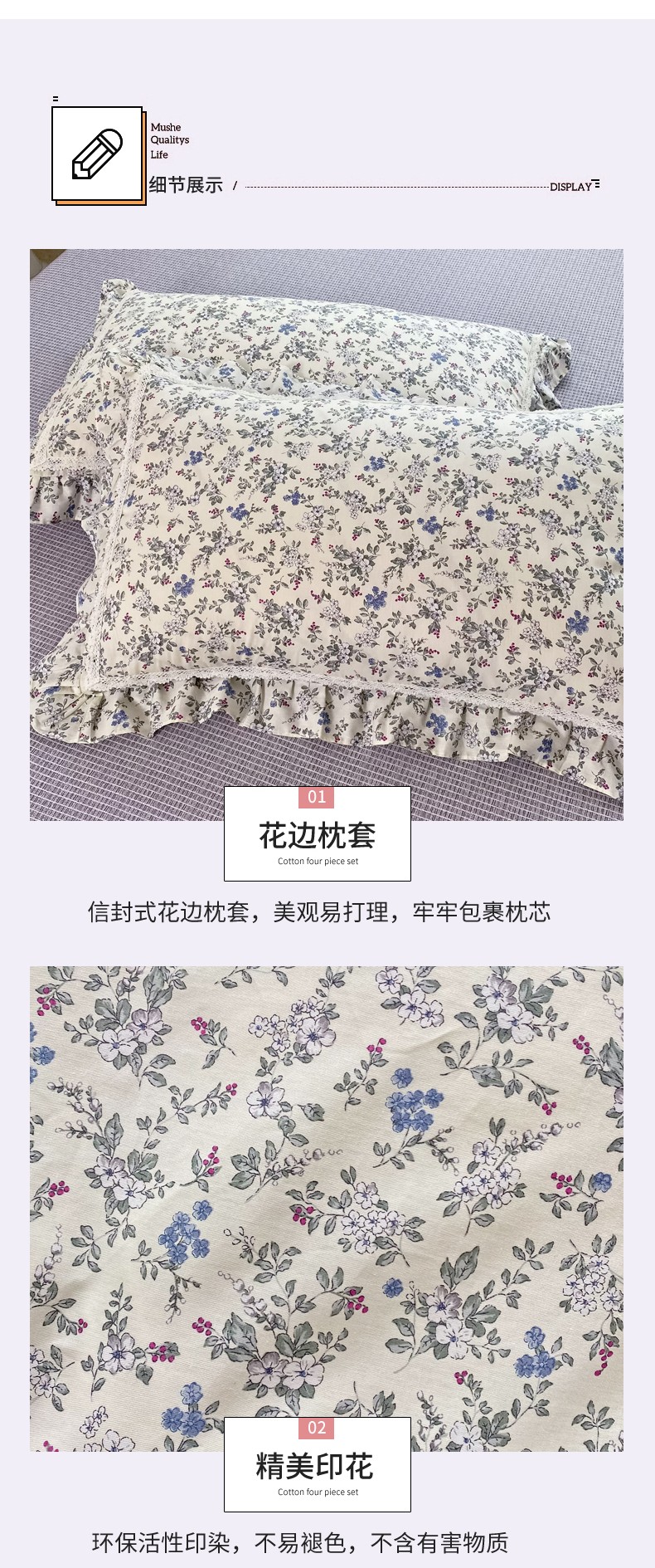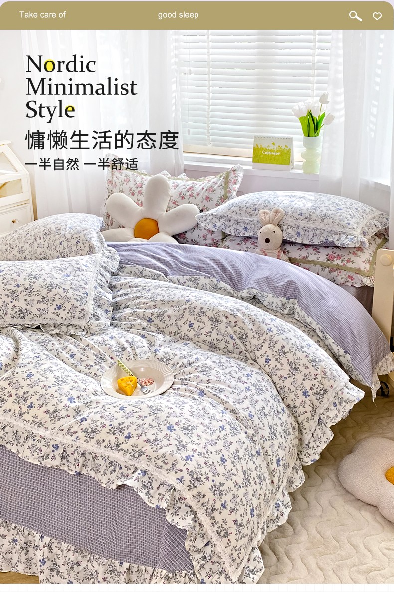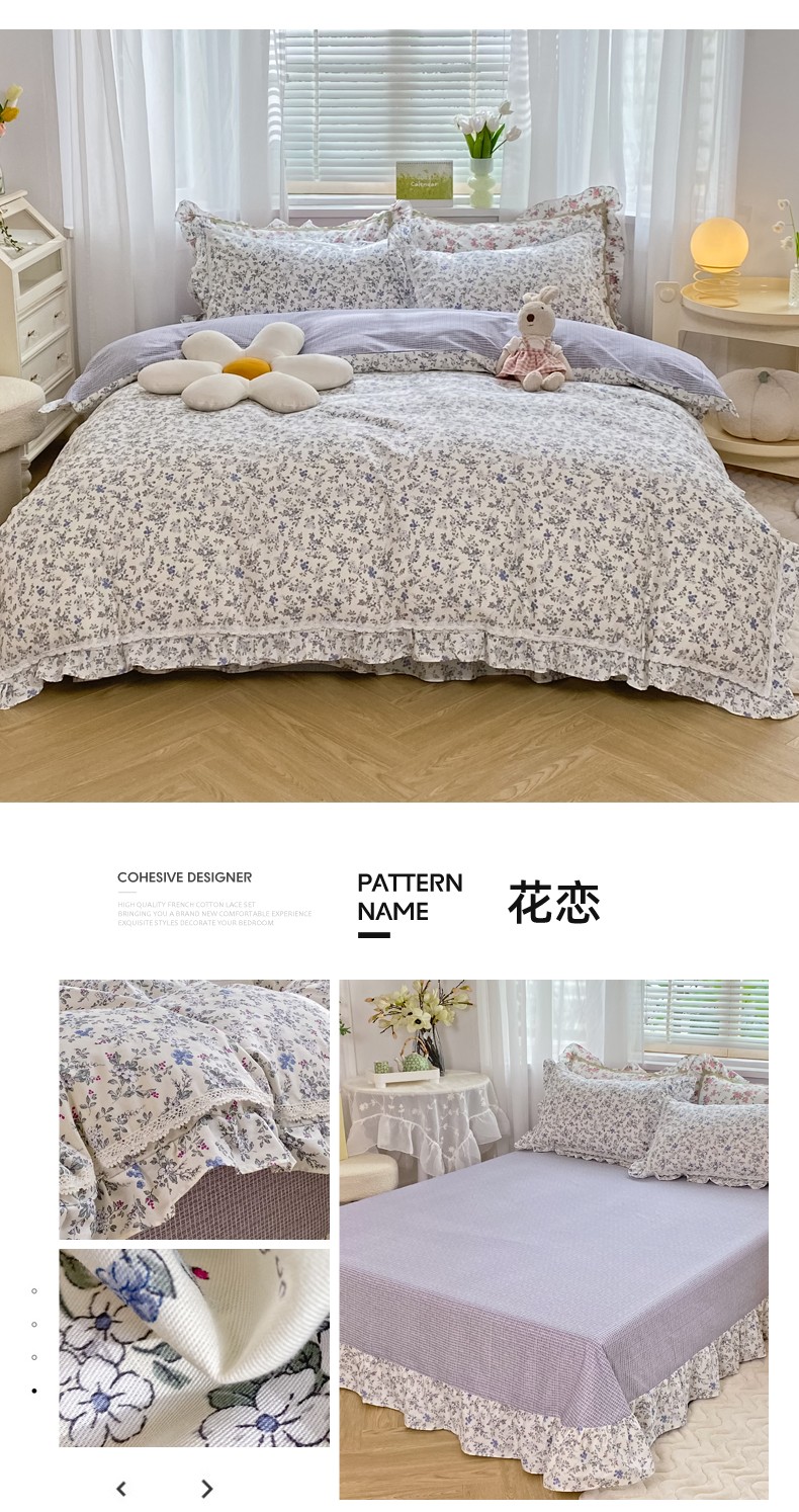 (总)艾唯希家纺 2025新款全棉双层花边四件套纯棉小碎花10个花型-花边系列,春意萌,恋之晴空,奶芙蓉-绿,奶芙蓉-粉,林间物语-绿,林间物语-紫,花冉,花艺漫漫,梳璃,雾里花