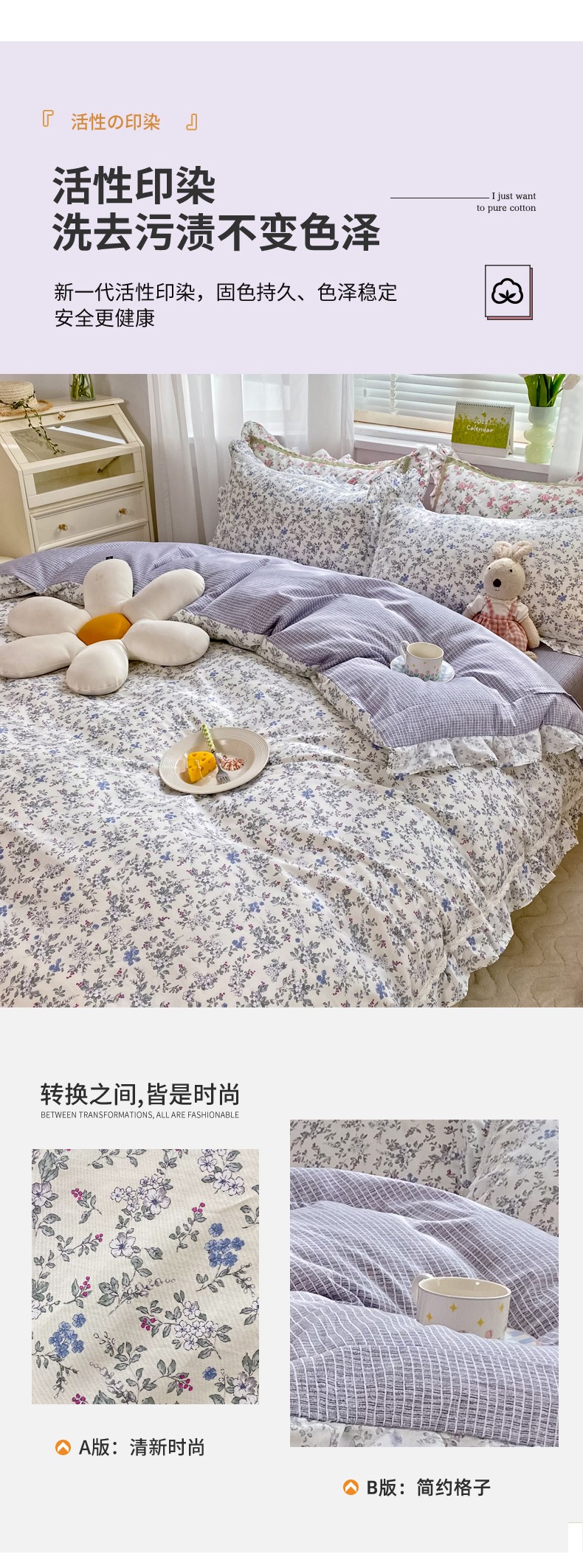 (总)艾唯希家纺 2025新款全棉A类双层纱工艺四件套纯棉,萌趣-粉紫,萌趣-蓝灰,萌趣-绿,萌趣-米,萌趣-奶茶
