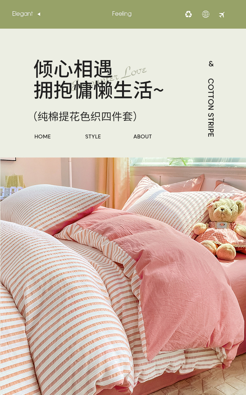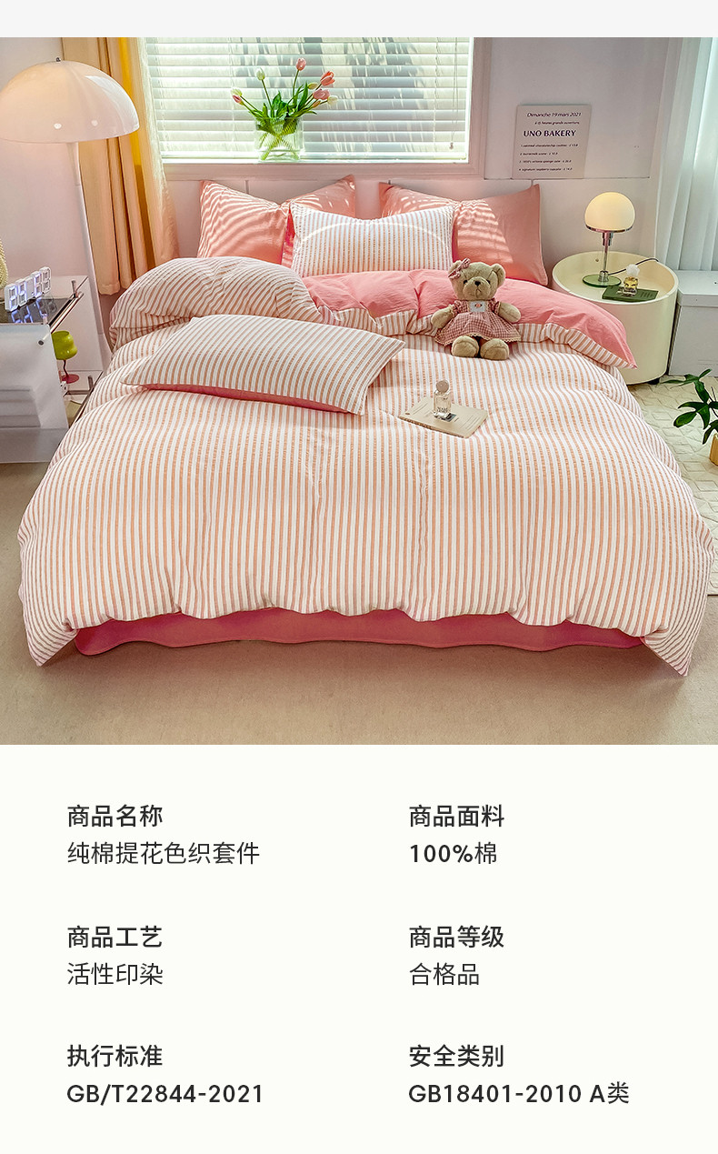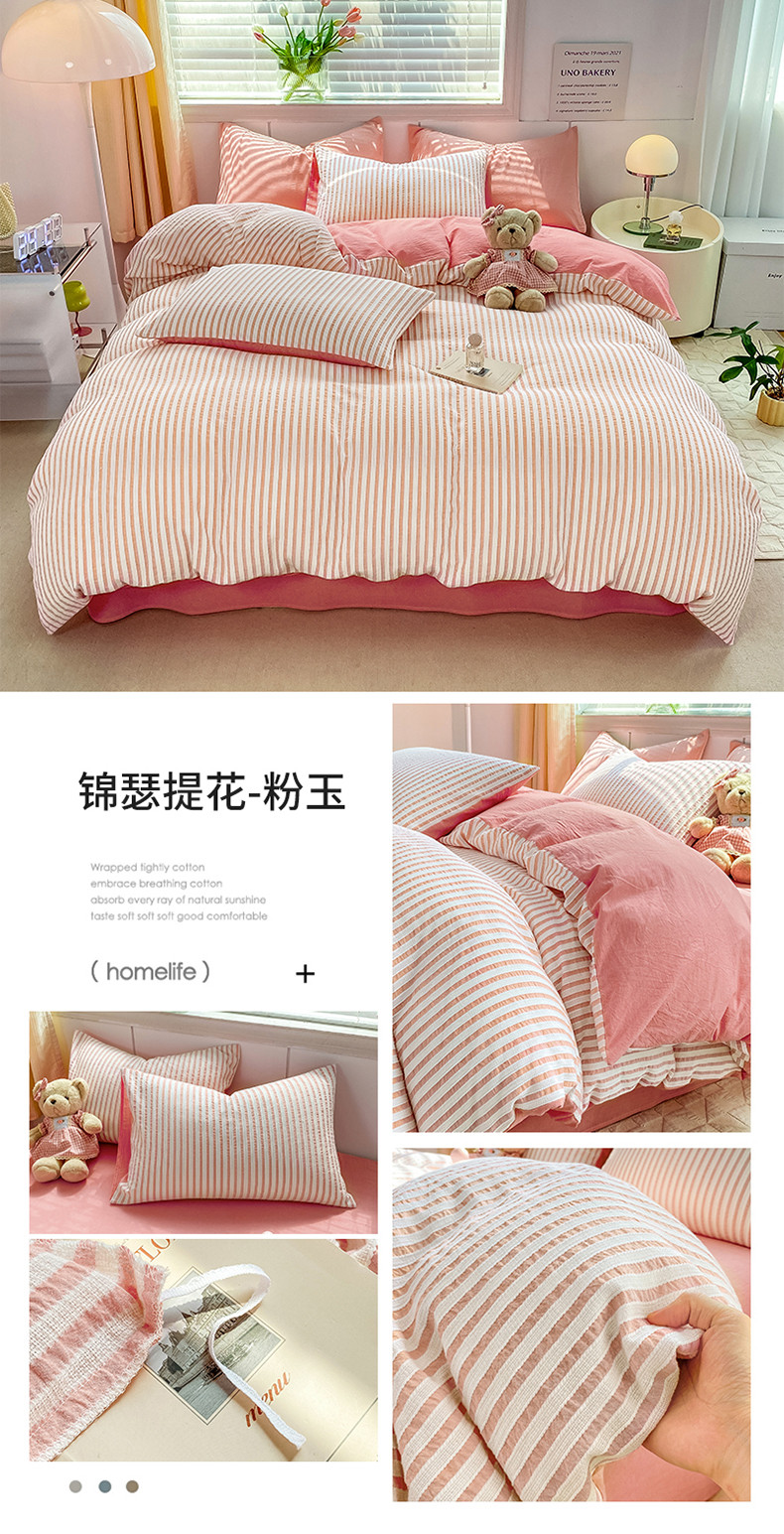 商品名称:恋人优选 2023新款纯棉色织锦瑟提花系列四件套 锦瑟提花-粉玉