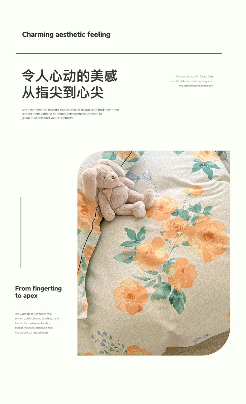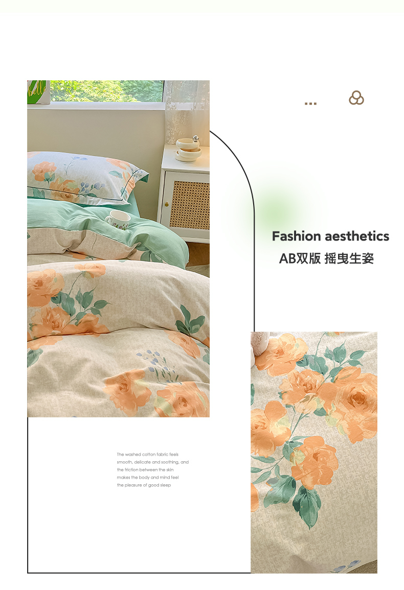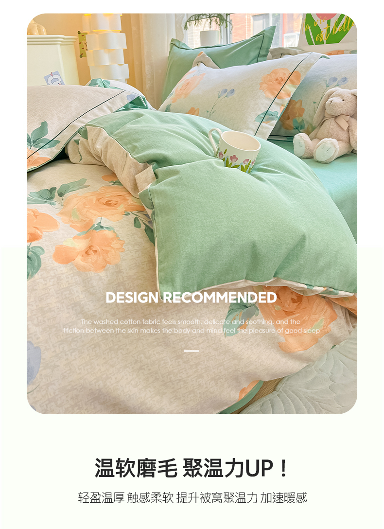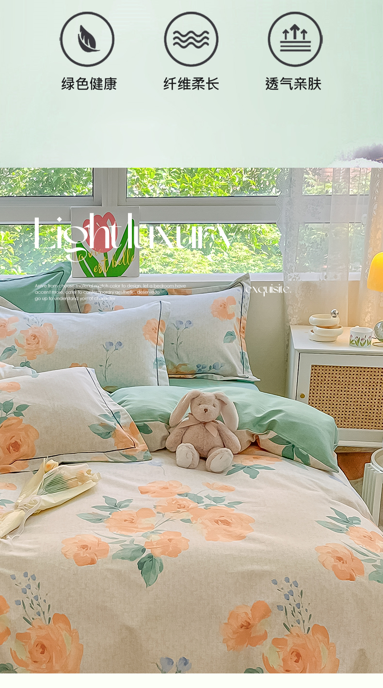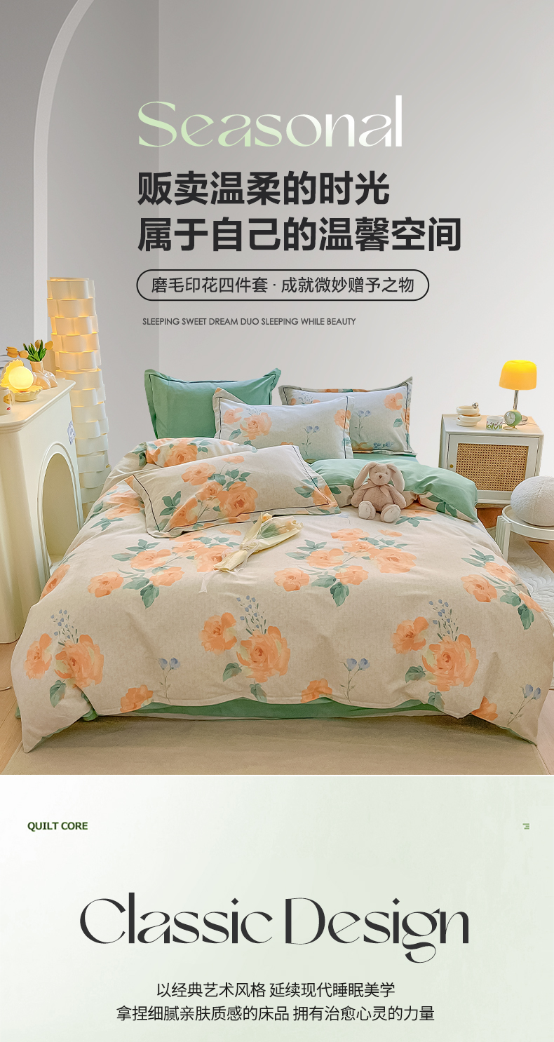 商品名称:帅露家纺 2023新款ins小清新磨毛印花四件套 春山居