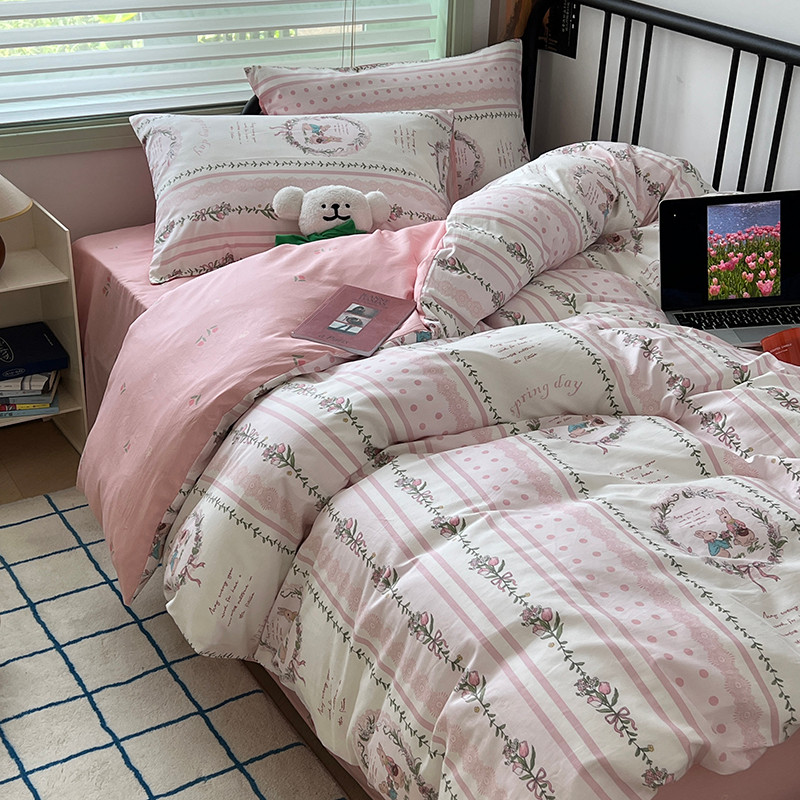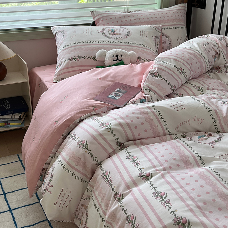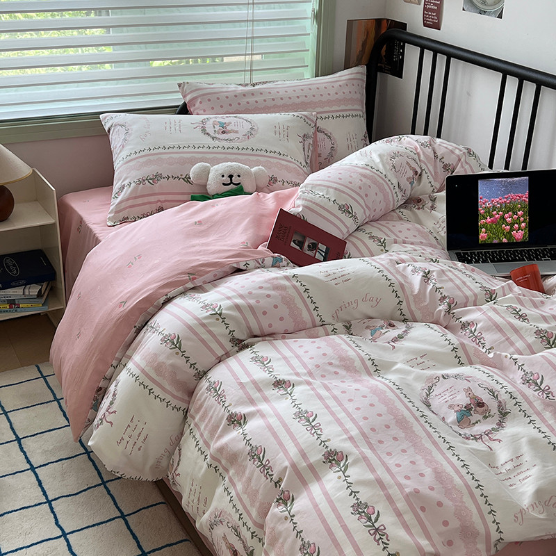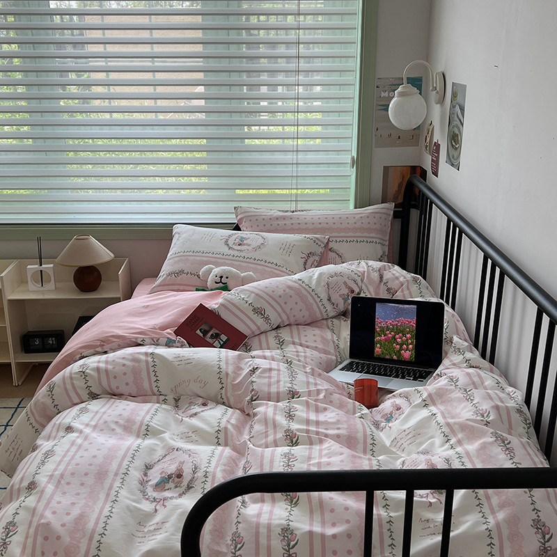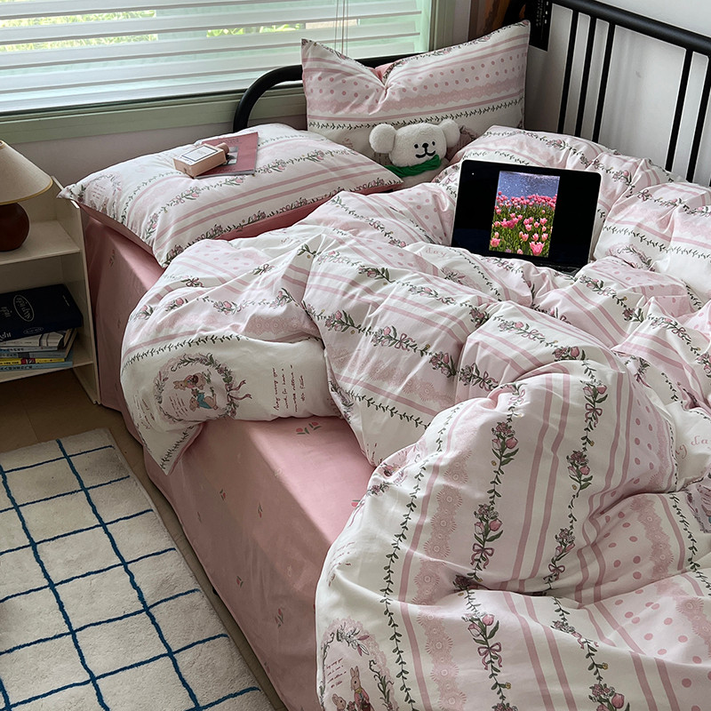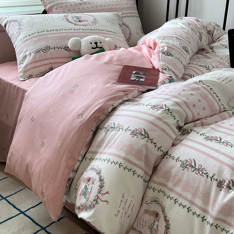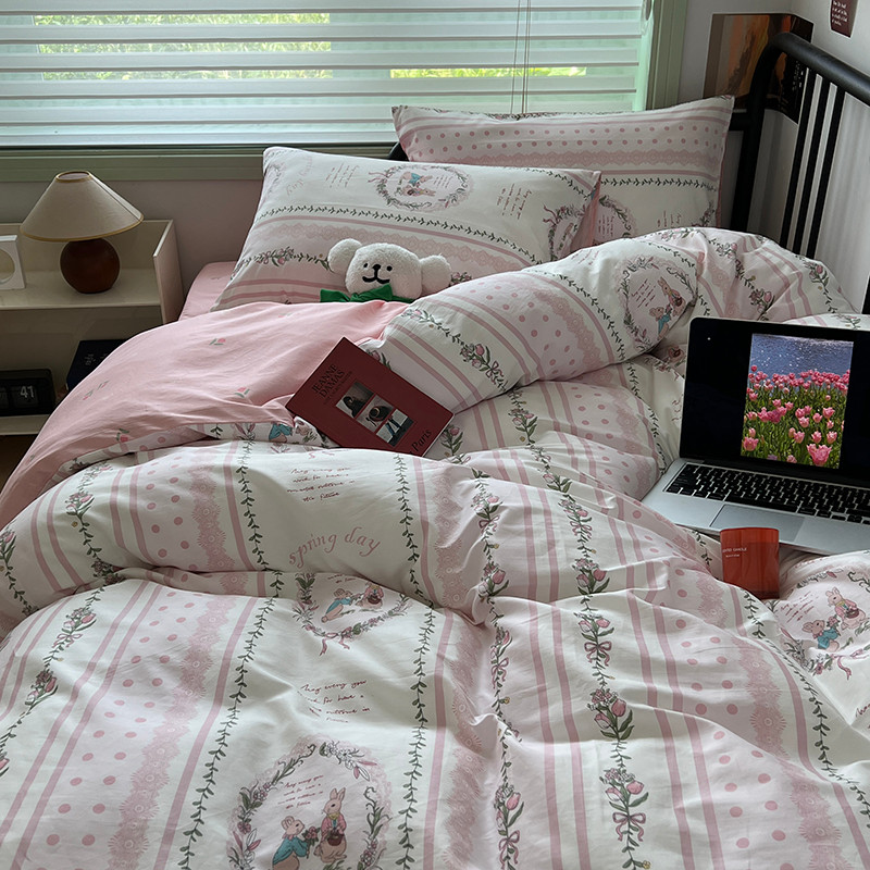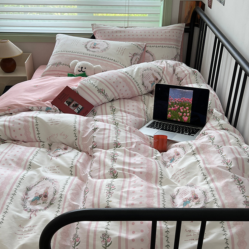 昔可 2023新款全棉卡通小清新四件套 安妮兔兔花园