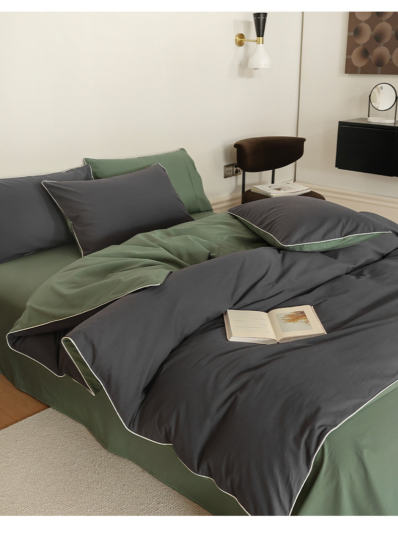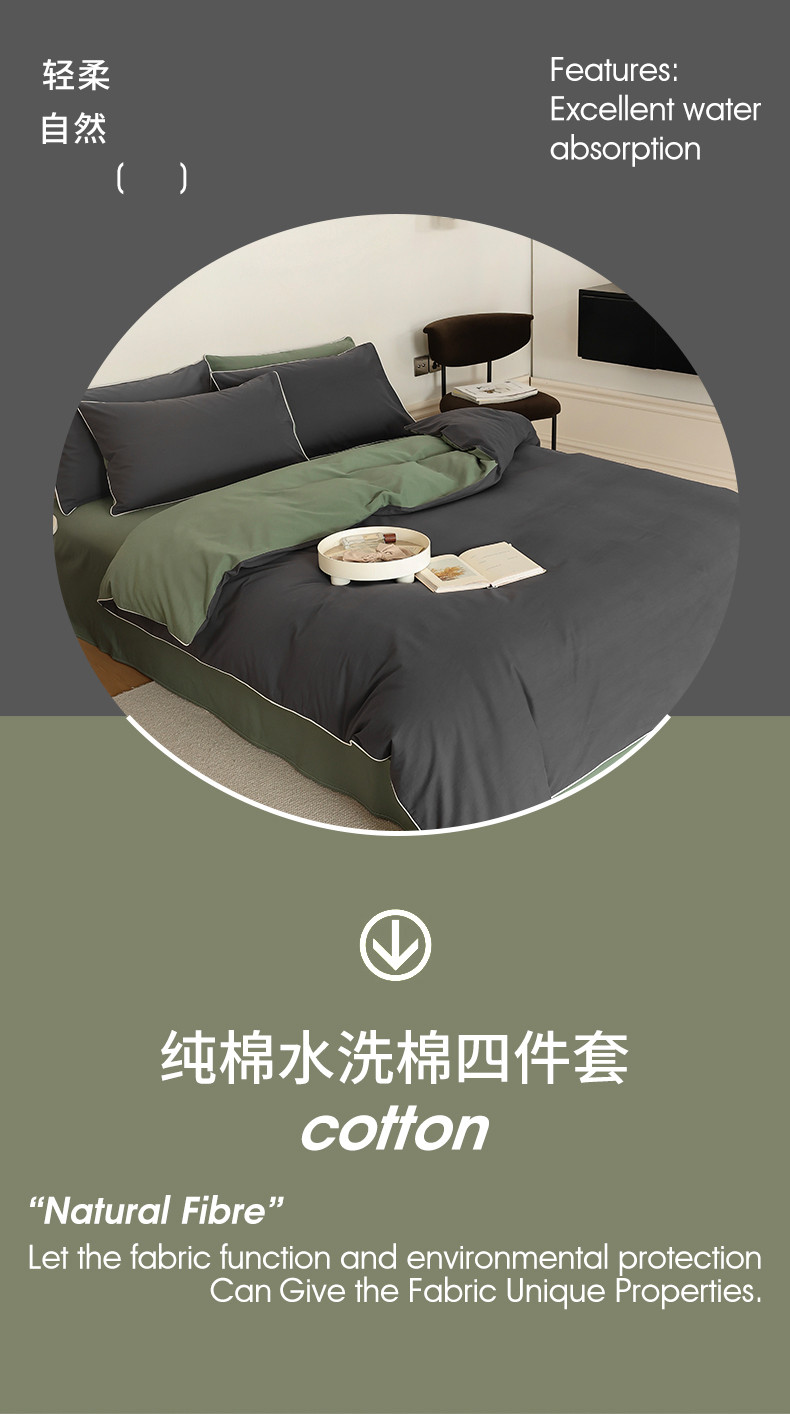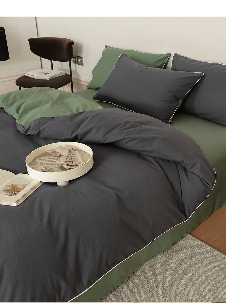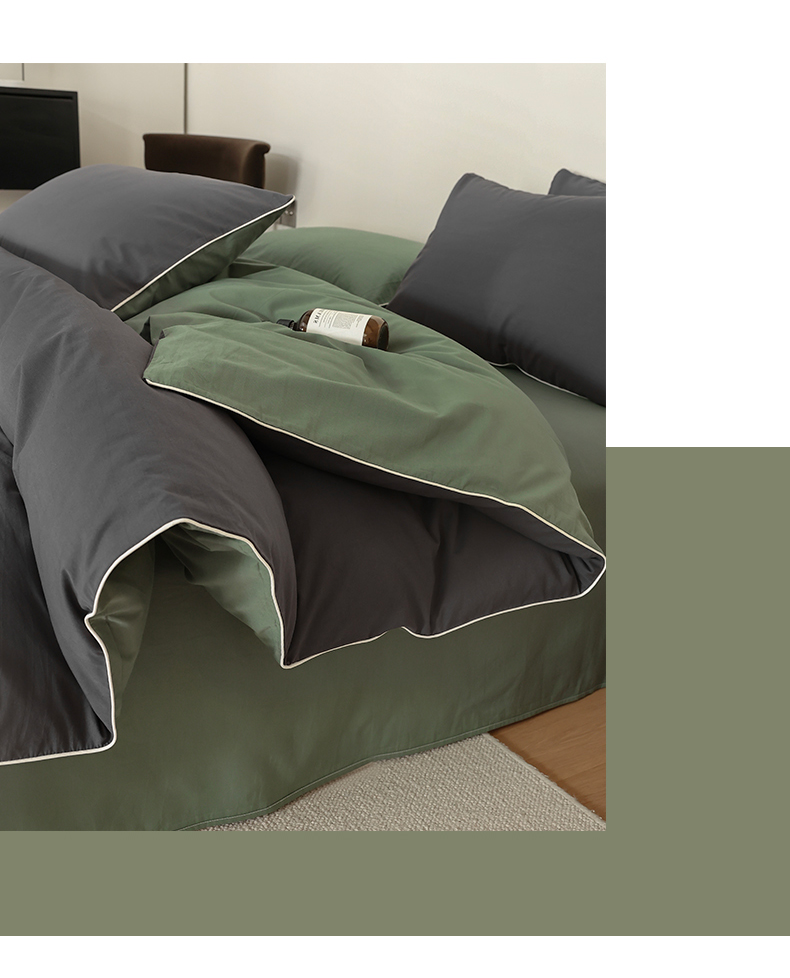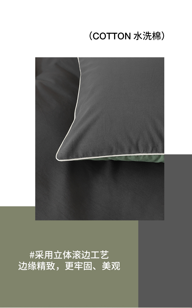 当前位置: 91家纺网 > 商品网购 > 床品套件 > 四件套 > 全棉普通四件套 > 万盛家纺 2025新款全棉水洗棉拼色四件套 夜色灰拼军绿