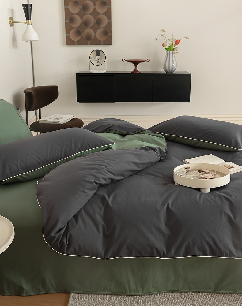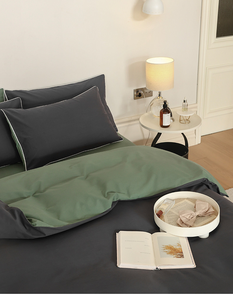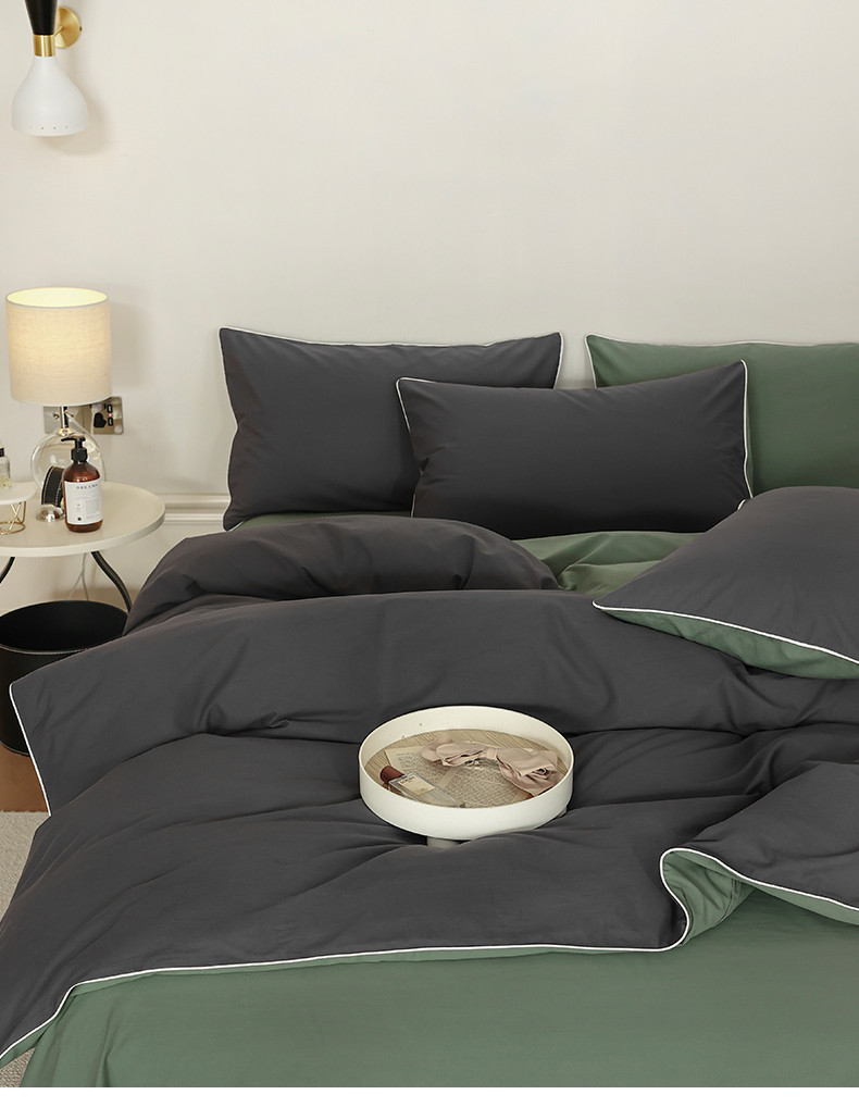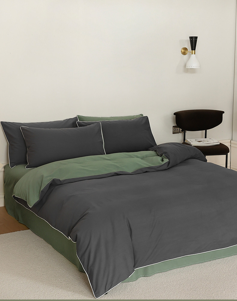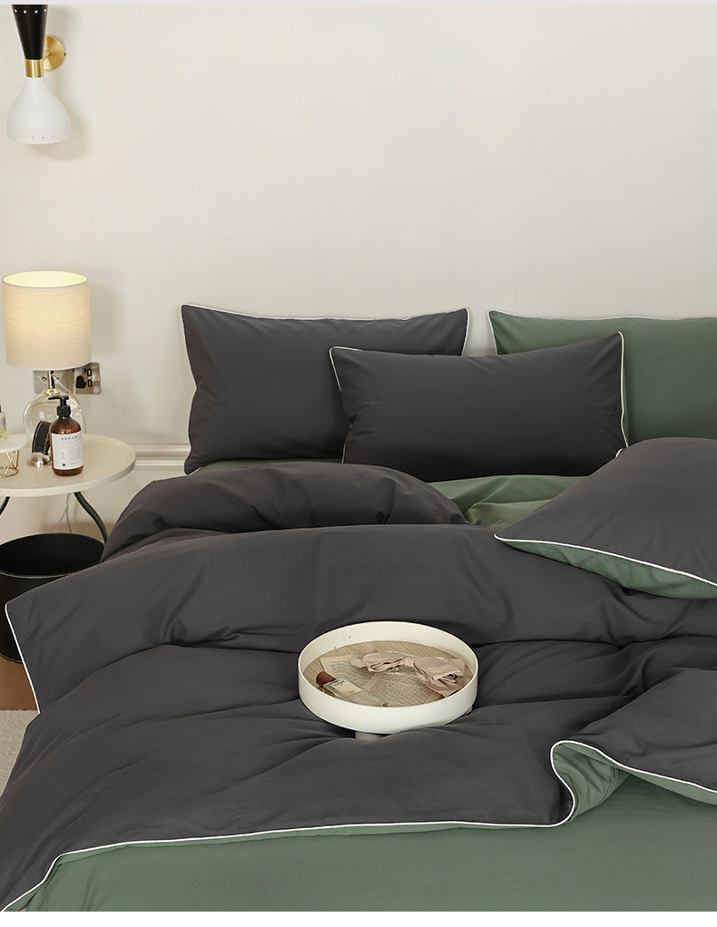 当前位置: 91家纺网 > 商品网购 > 床品套件 > 四件套 > 全棉普通四件套 > 万盛家纺 2025新款全棉水洗棉拼色四件套 夜色灰拼军绿