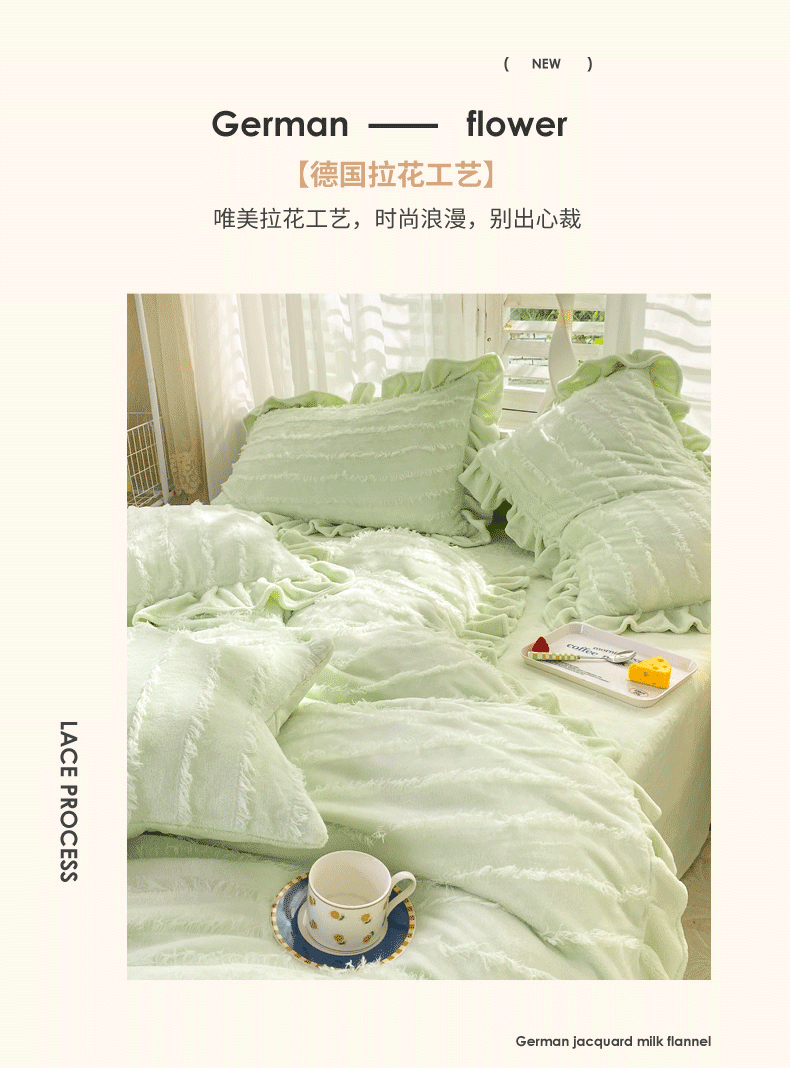 丝印良品 2023新款高端牛奶绒提花四件套 抹茶绿