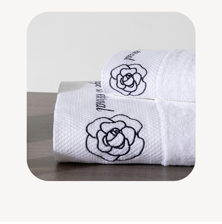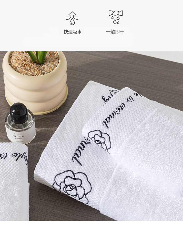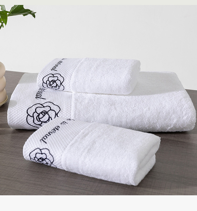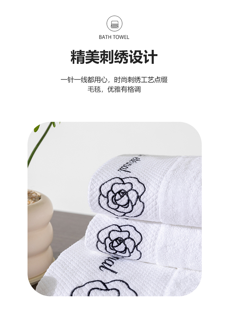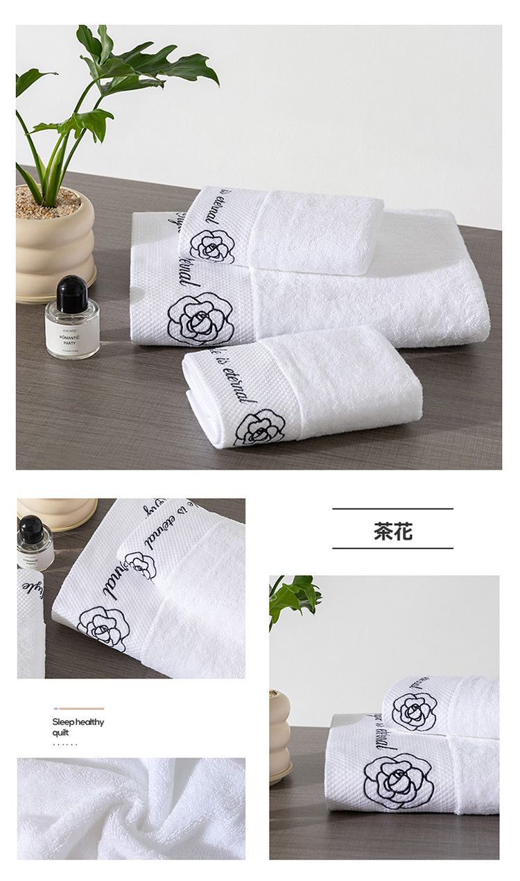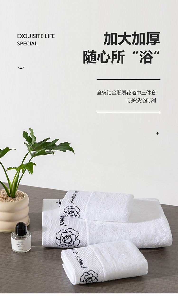 全棉纯棉五星级酒店浴巾布草宾馆毛巾民宿铂金缎绣花面巾三件套茶花