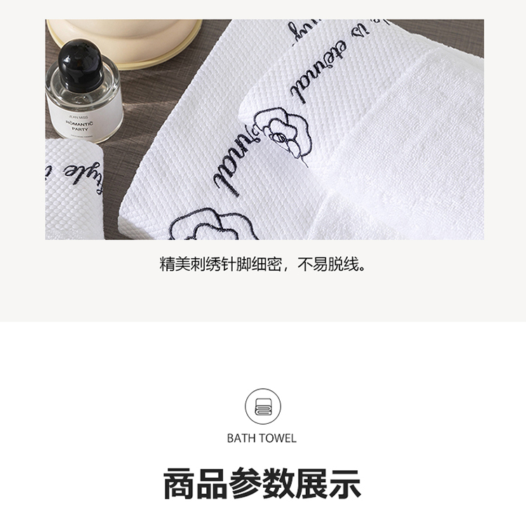 商品名称:全棉纯棉五星级酒店浴巾布草宾馆毛巾民宿铂金缎绣花面巾三件套茶花