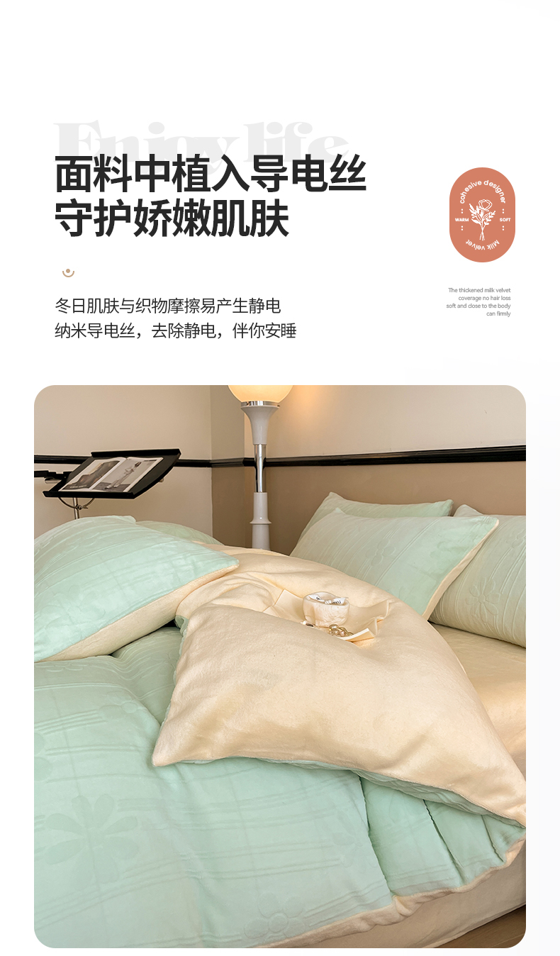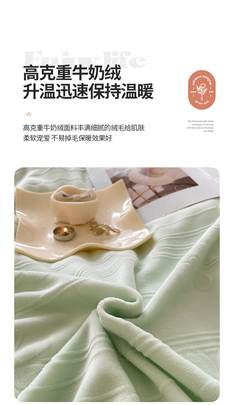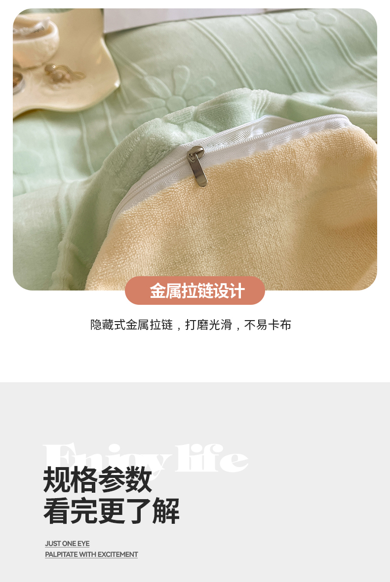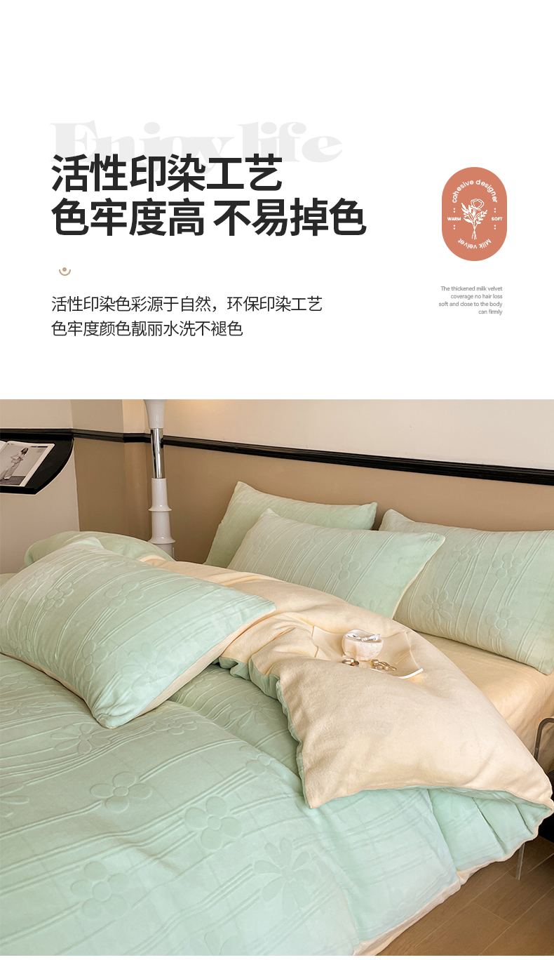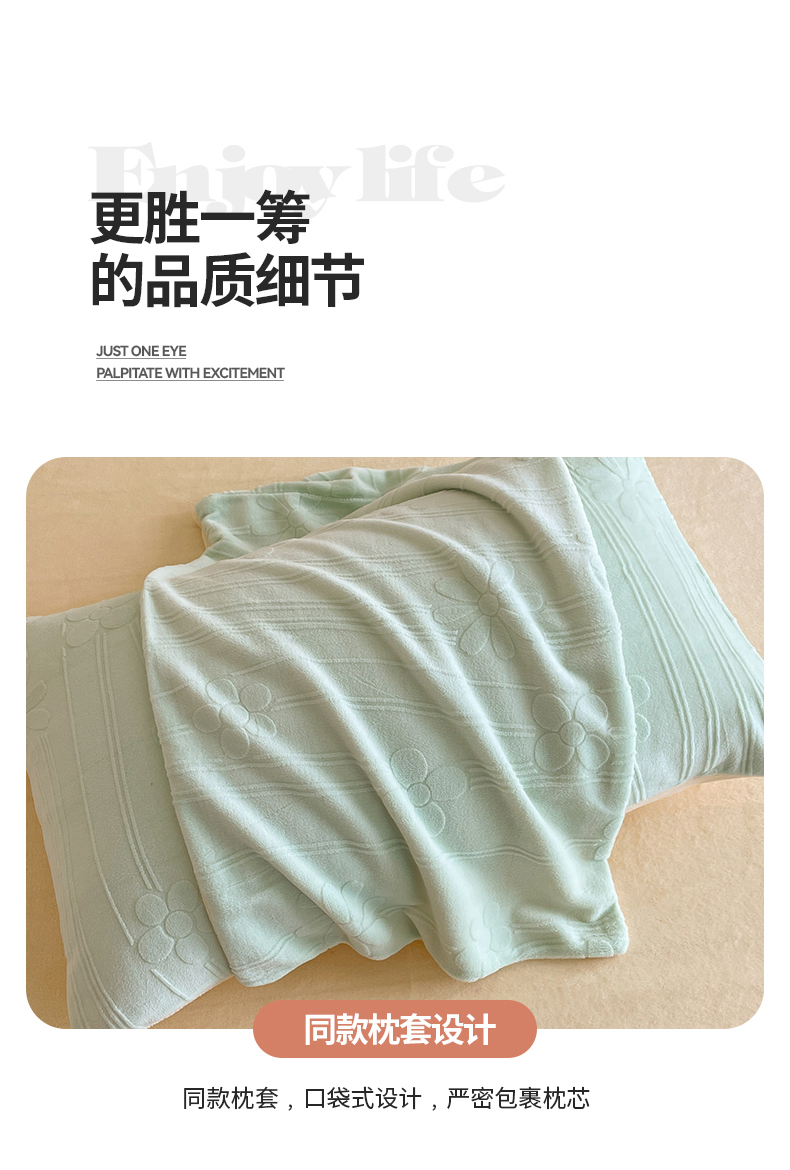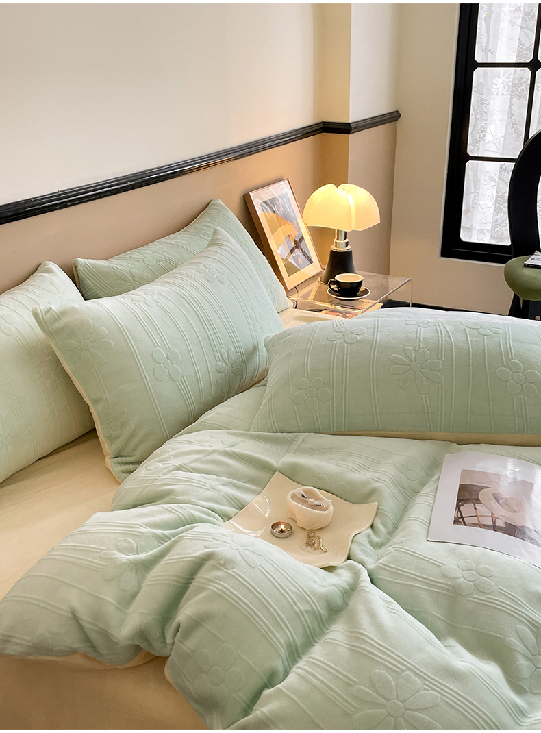 商品名称:澳梵 2023新款雕花牛奶绒四件套 冬日花信-嫩绿