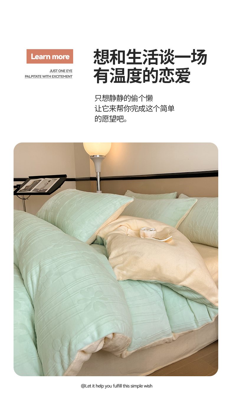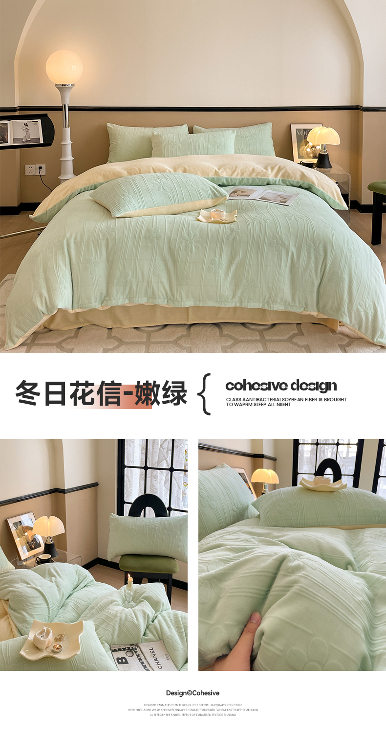 澳梵 2023新款雕花牛奶绒四件套 冬日花信-嫩绿