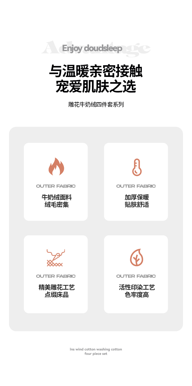 (总)澳梵 2023新款雕花牛奶绒四件套,冬日花信-嫩绿,冬日花信-粉,巴洛特-嫩黄,巴洛特-草绿,浪漫花都-灰,浪漫花都-白,浪漫花都-粉,玫瑰庄园-米黄,玫瑰庄园-绿,玫瑰庄园-蓝