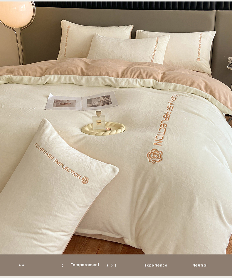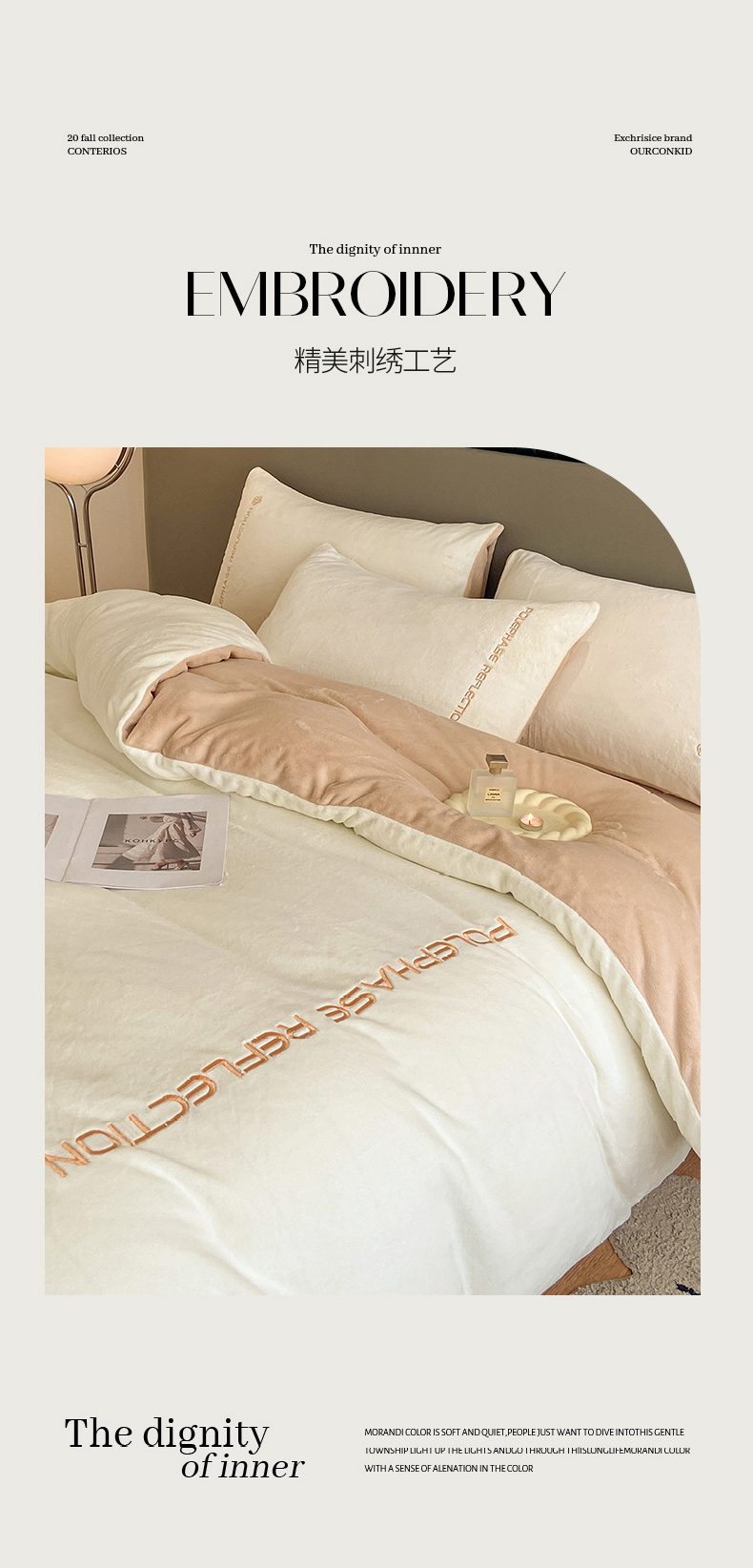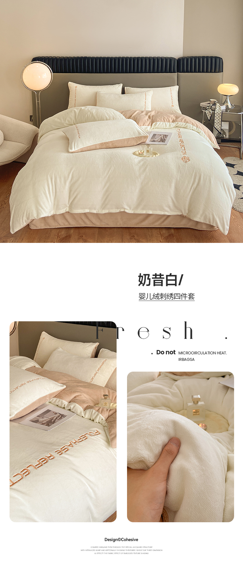 澳梵 2023新款轻奢风牛奶绒刺绣四件套 奶昔白
