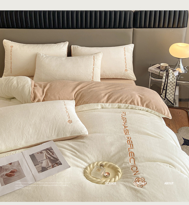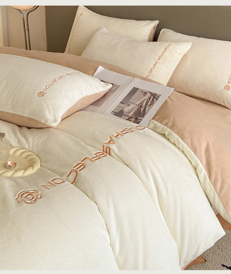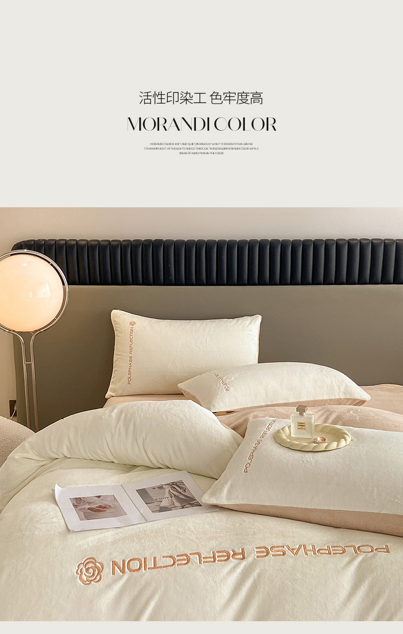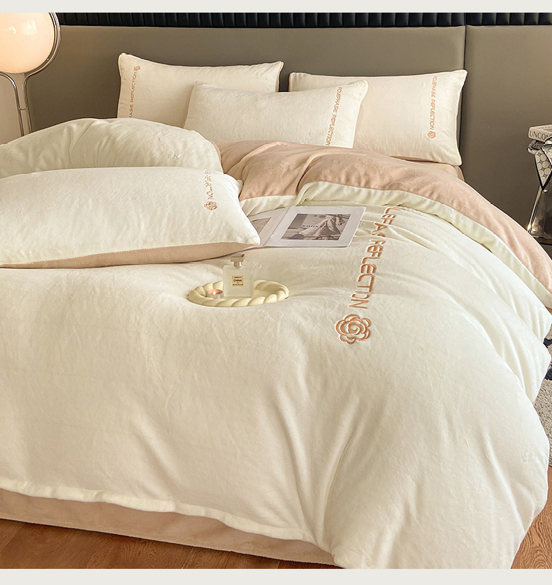 澳梵 2023新款轻奢风牛奶绒刺绣四件套 奶昔白
