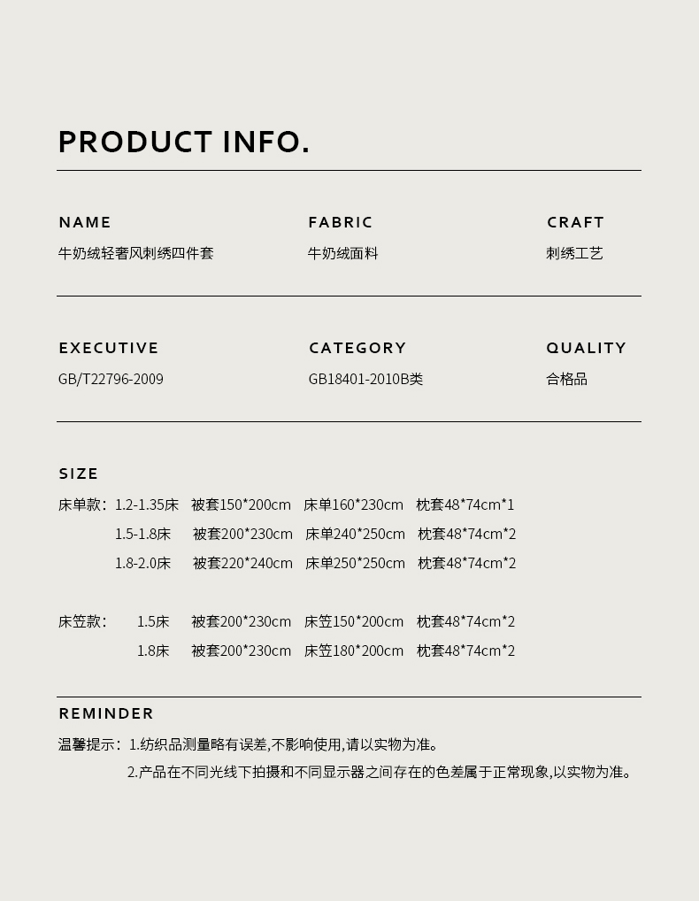 商品名称:澳梵 2023新款轻奢风牛奶绒刺绣四件套 奶昔白