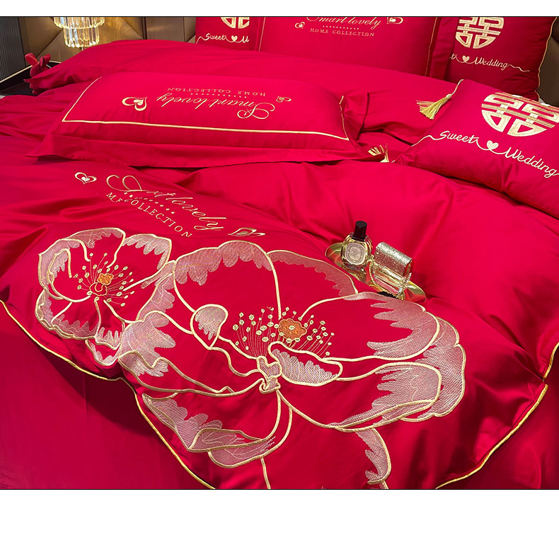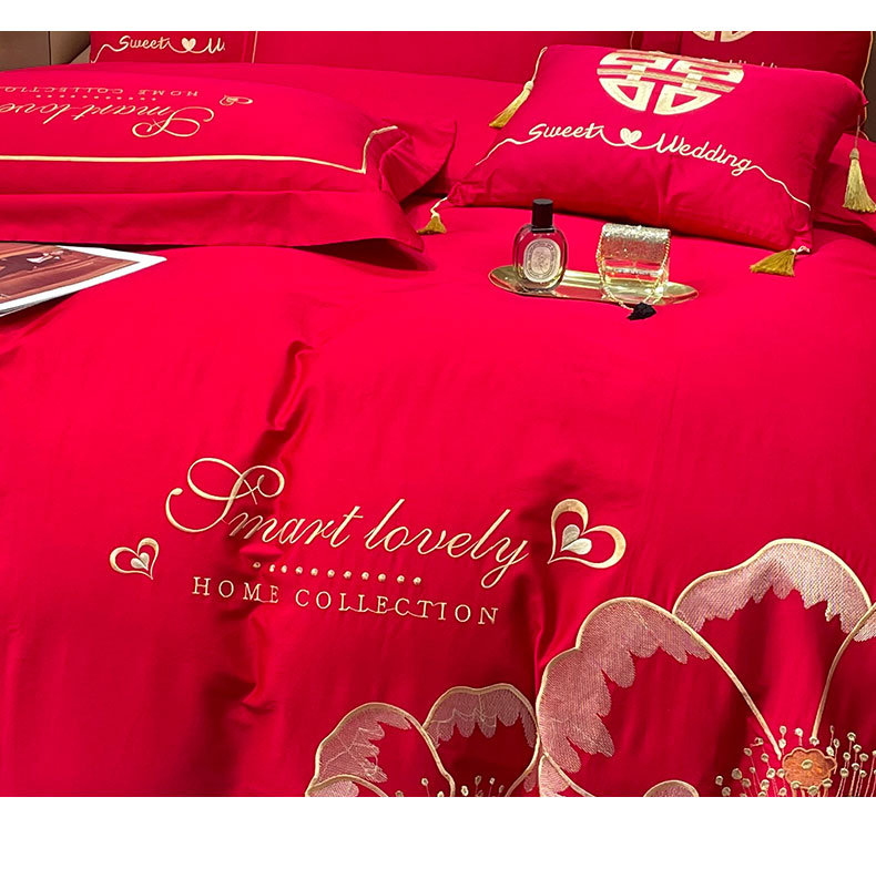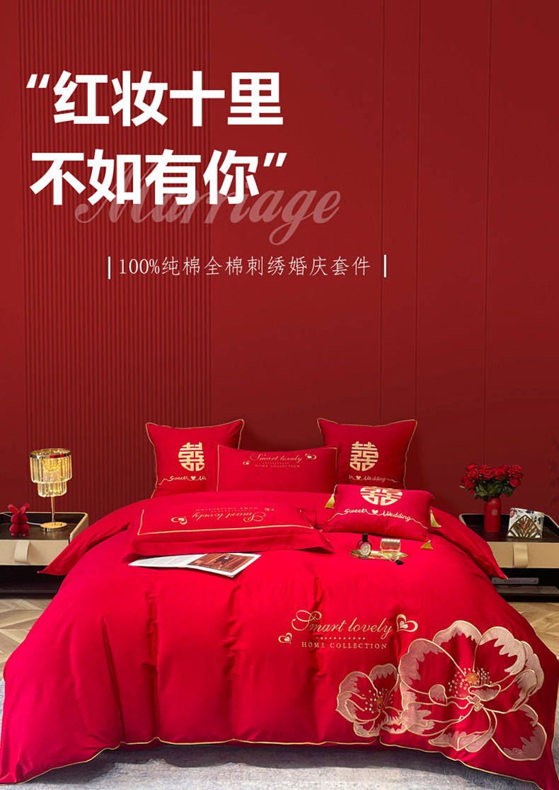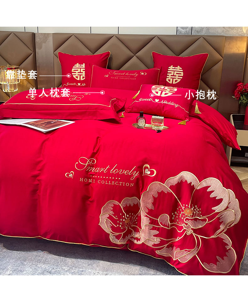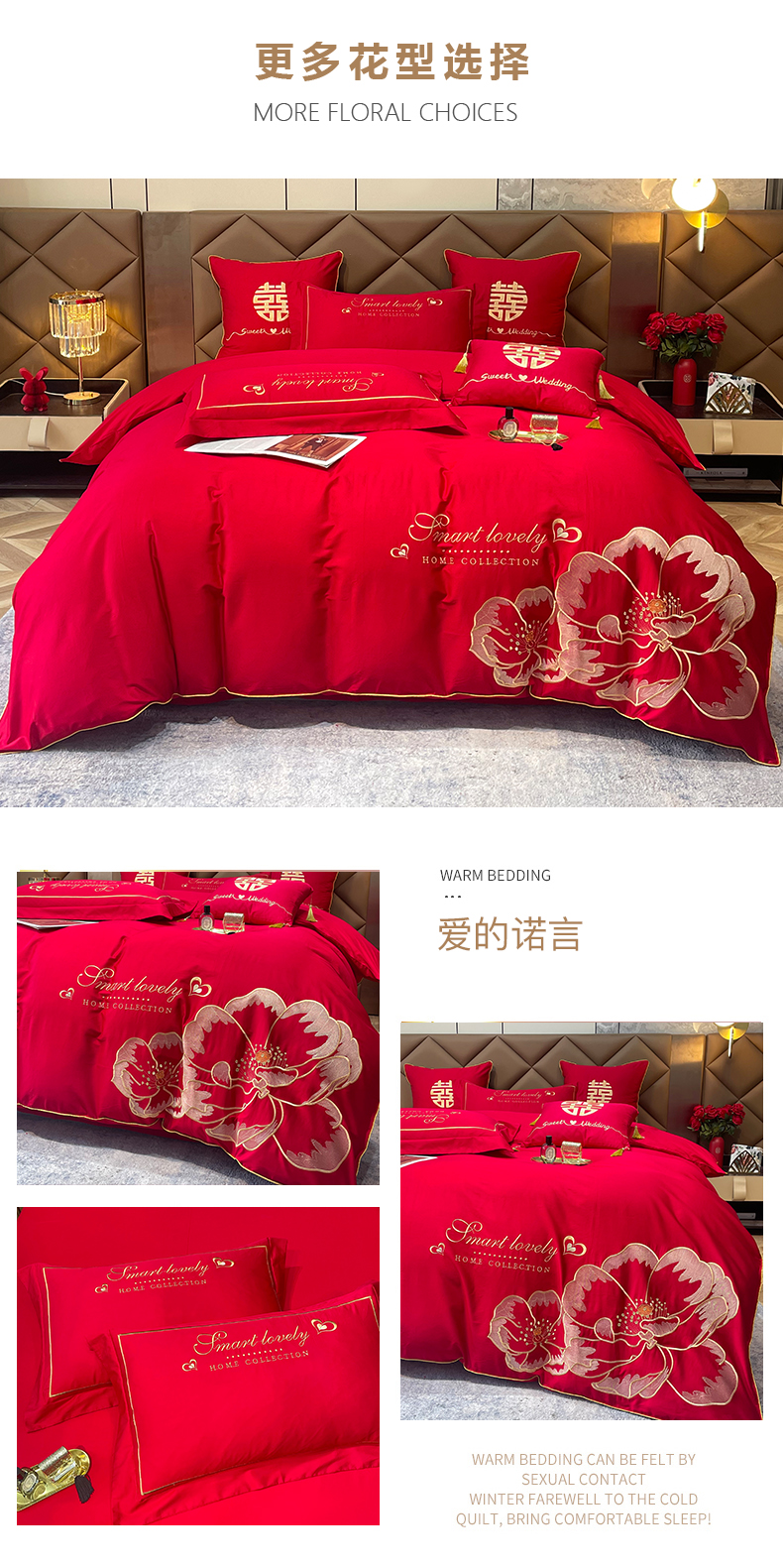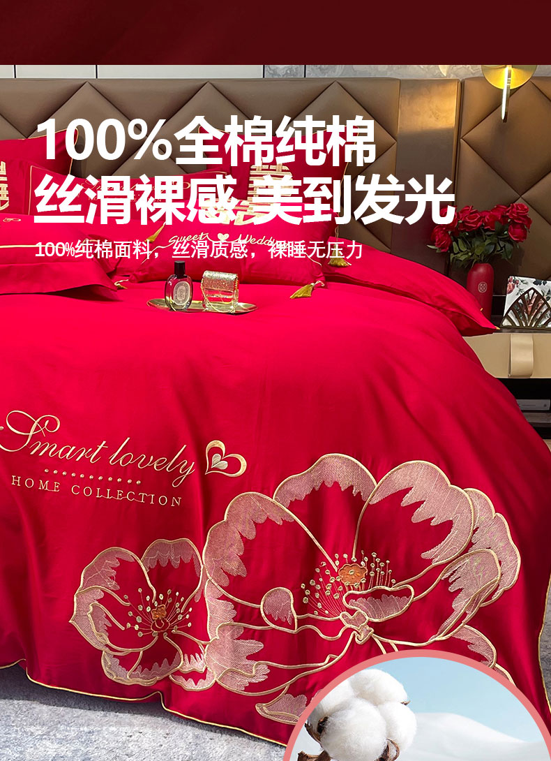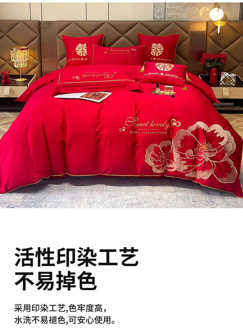 (总)甜咪咪婚庆 2025新款50支长绒棉全棉婚庆床单床盖四件套多件套刺绣工艺,洛可可,爱恋小熊,爱意久久,多子多福,花田喜事,节节高升,克拉恋人,浪漫情怀,怦然心动红,怦然心动玉,甜心玫瑰,温莎公主,伊甸园,醉红妆