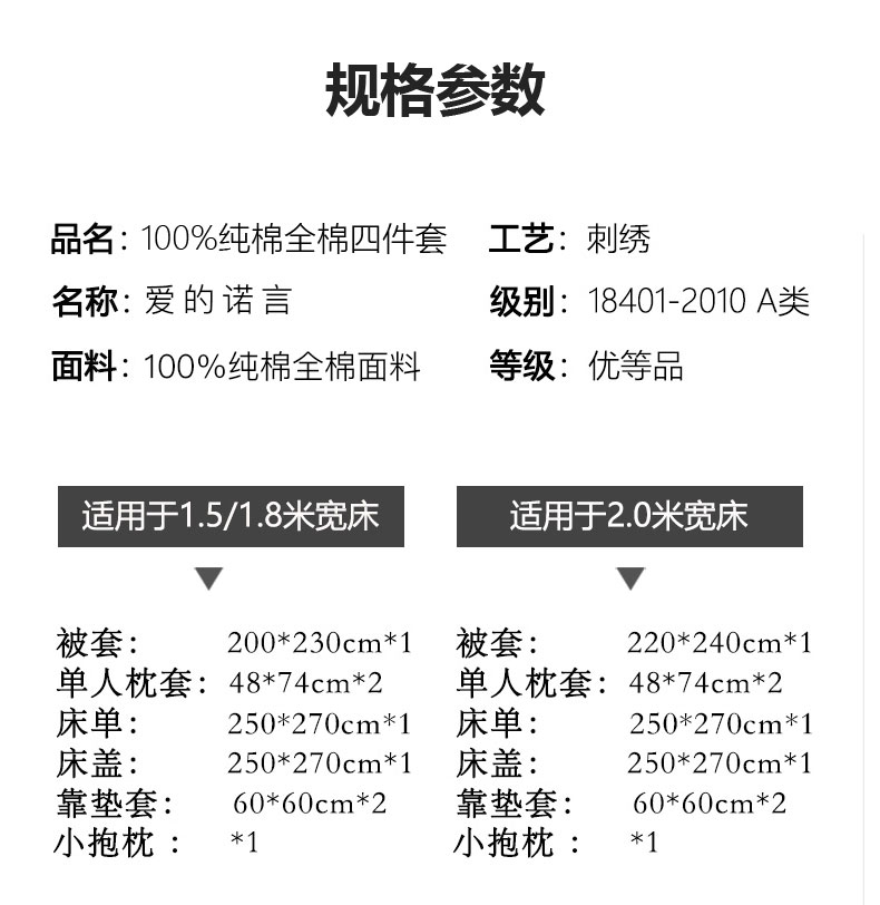商品名称:甜咪咪 2023新款纯棉40S小红书推荐热款婚庆四件套多件套 爱的诺言