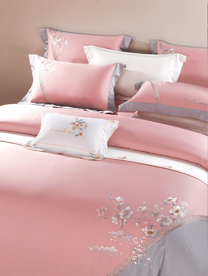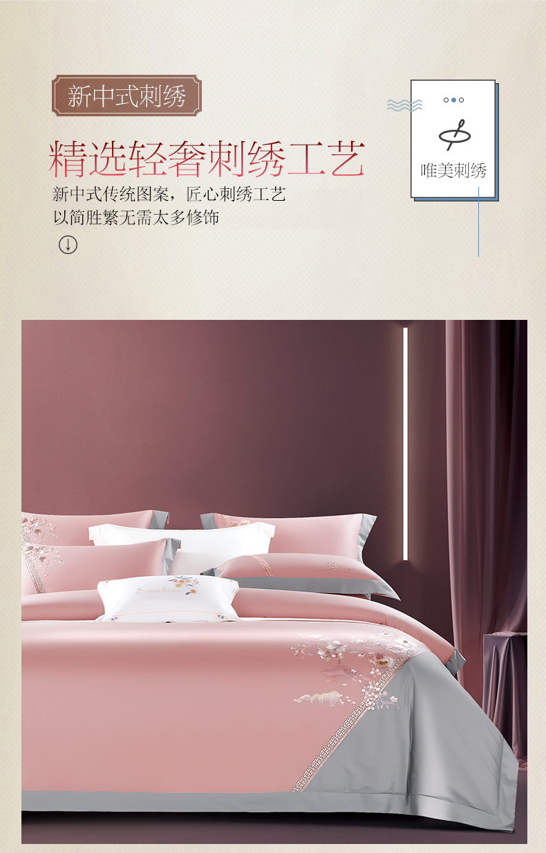 (总)诗黛尔 2025秋冬新款长绒棉刺绣风生水起系列四件套,风生水起-落樱粉,风生水起-南瓜橘,风生水起-绅士灰,风生水起-水晶兰,风生水起-香槟金,风生水起-油果绿