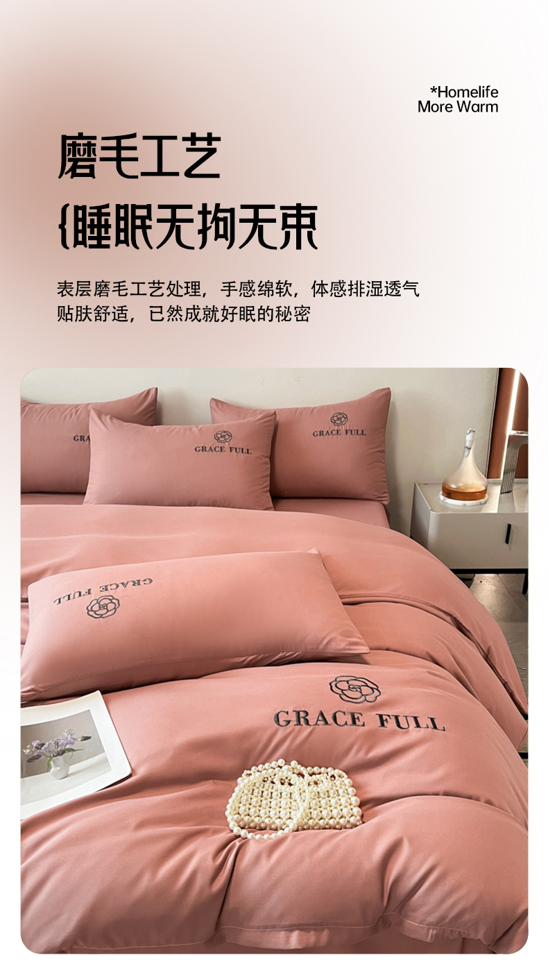 当前位置: 91家纺网 > 商品网购 > 床品套件 > 四件套 > 普通磨毛四件套 > 伊梵居 2025新款梵克系列刺绣水洗棉磨毛四件套 梵花-豆沙色