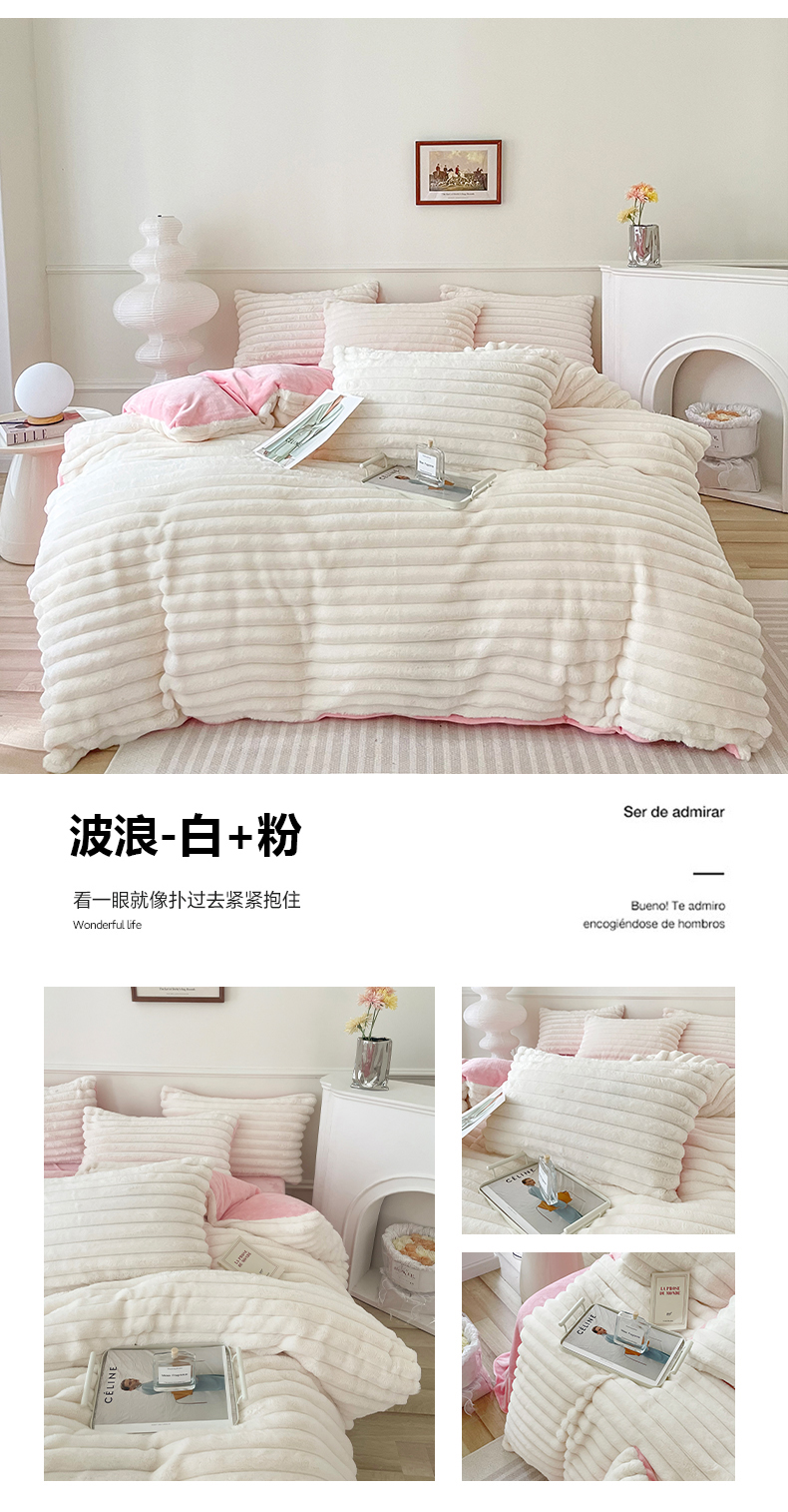 商品名称:喜梦缘 2025新款A类兔毛绒四件套 波浪-白+粉