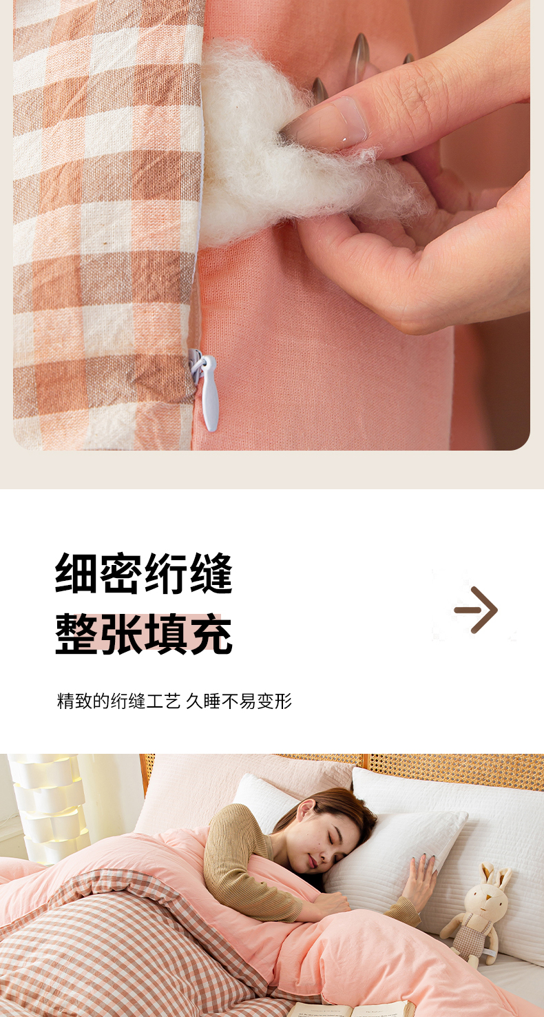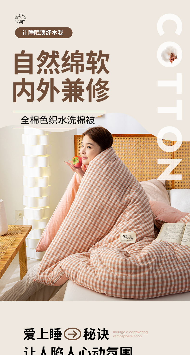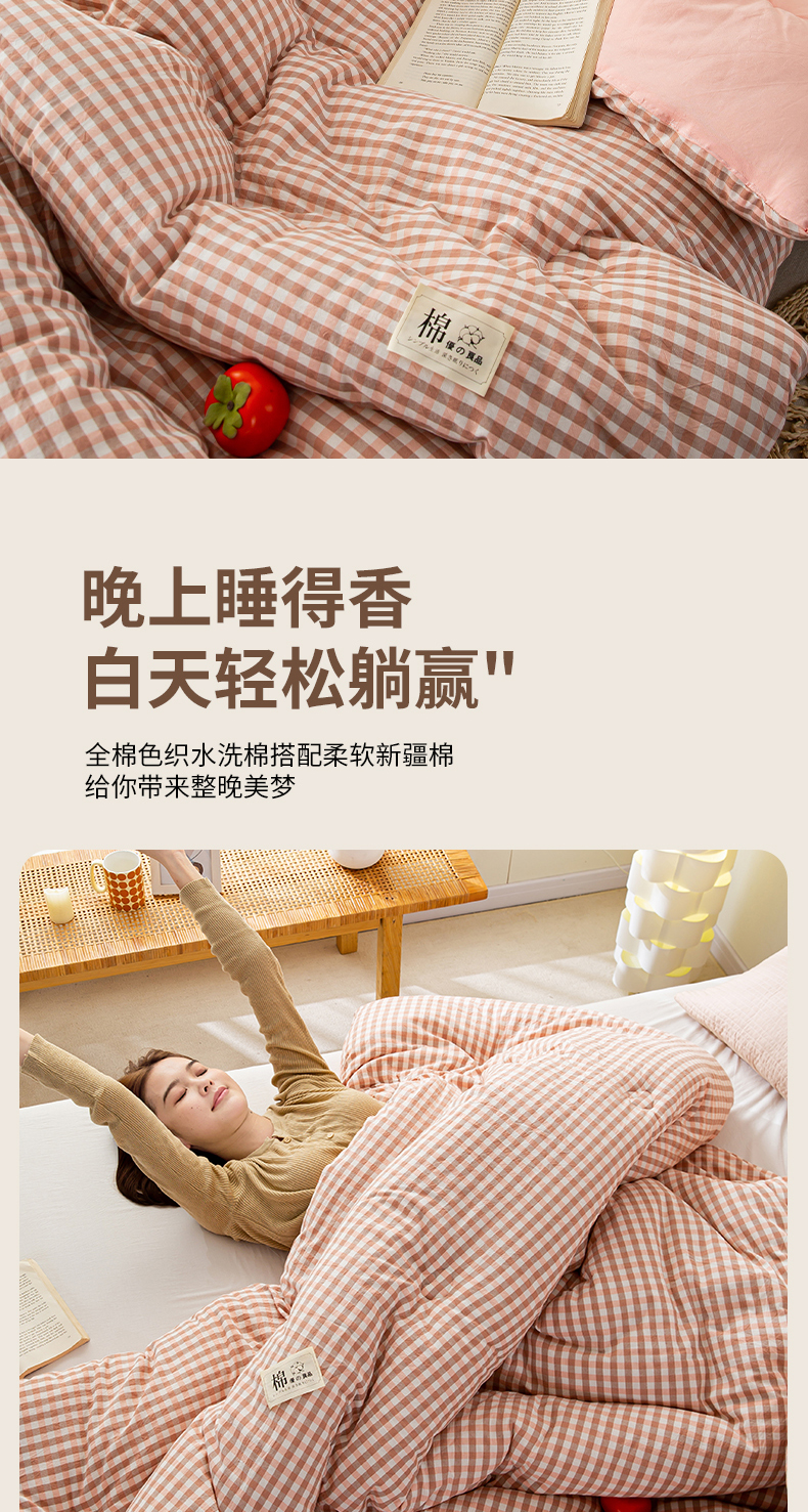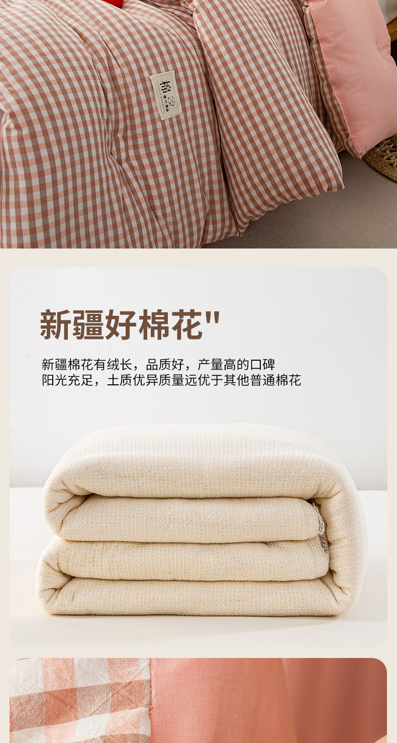 • 91家纺网 家纺一手货源 找家纺 鸣升 23新款无印风全棉花被色织水洗棉100%冬被子被芯 粉小格
