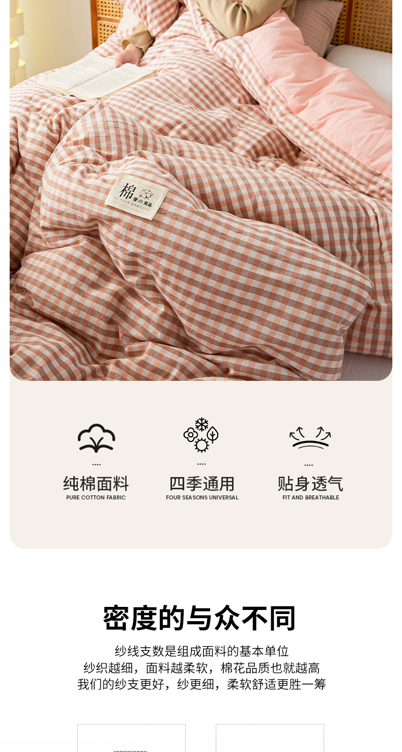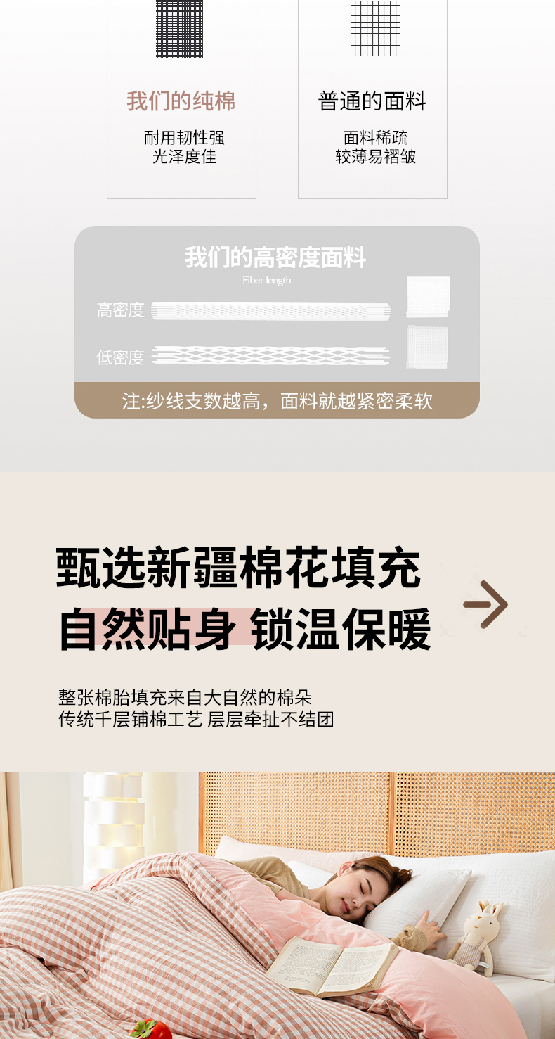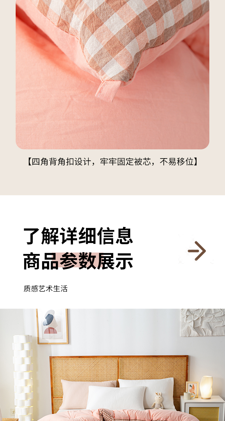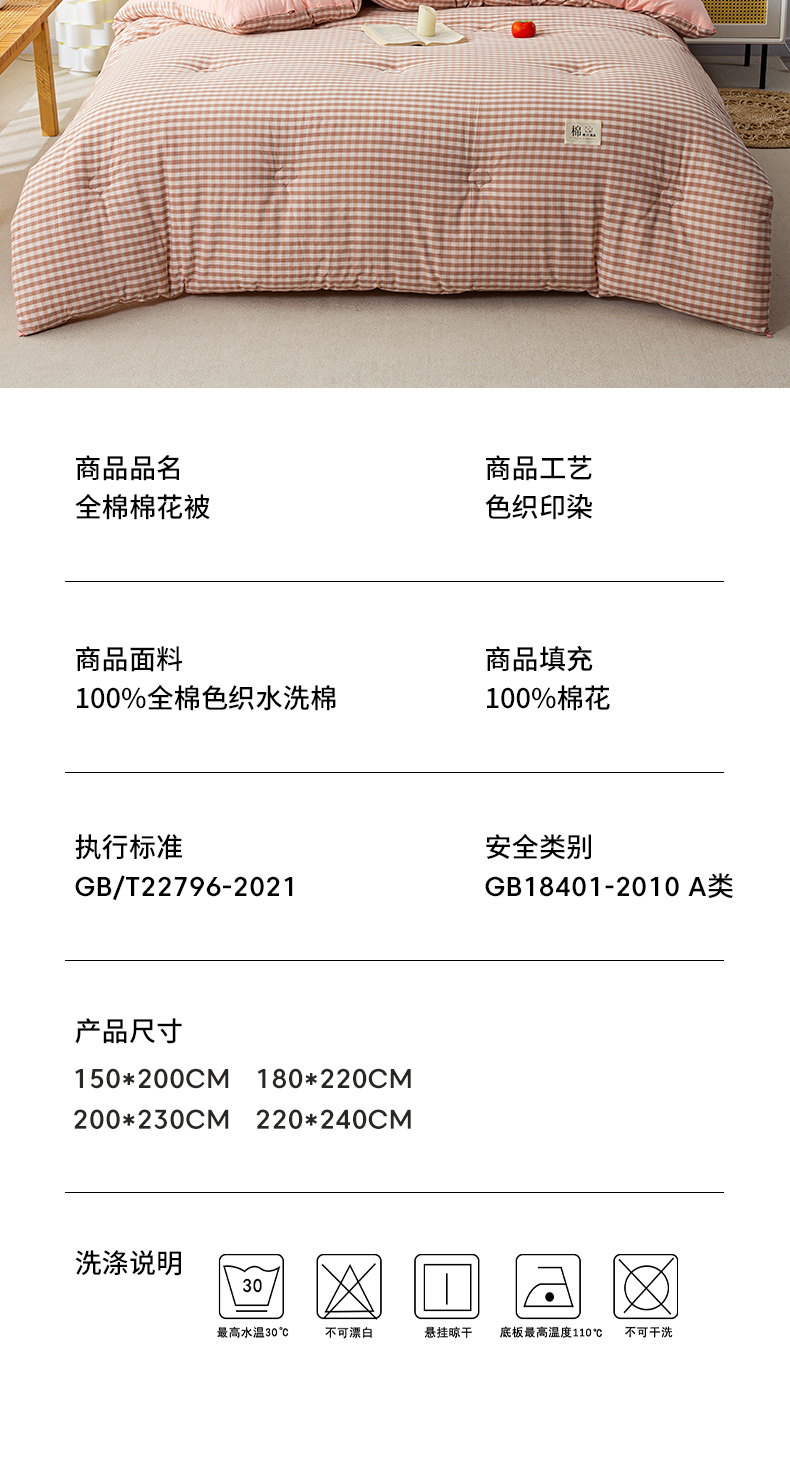 • 91家纺网 家纺一手货源 找家纺 鸣升 23新款无印风全棉花被色织水洗棉100%冬被子被芯 粉小格