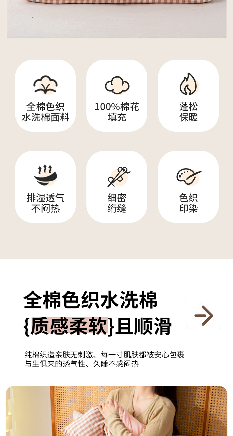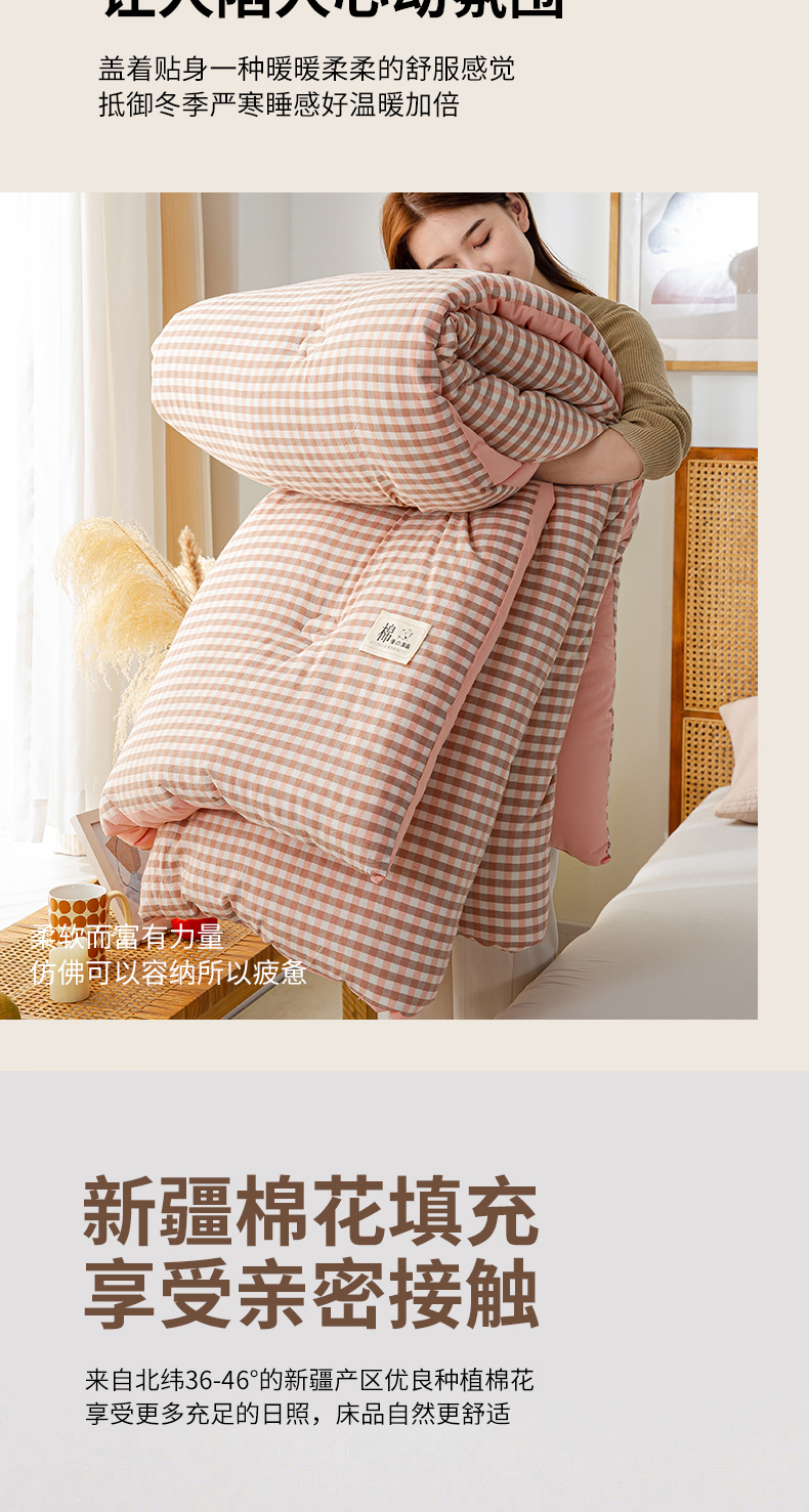 当前位置: 91家纺网 > 商品网购 > 被子 > 冬被 > 鸣升 23新款无印风全棉花被色织水洗棉100%冬被子被芯 粉小格