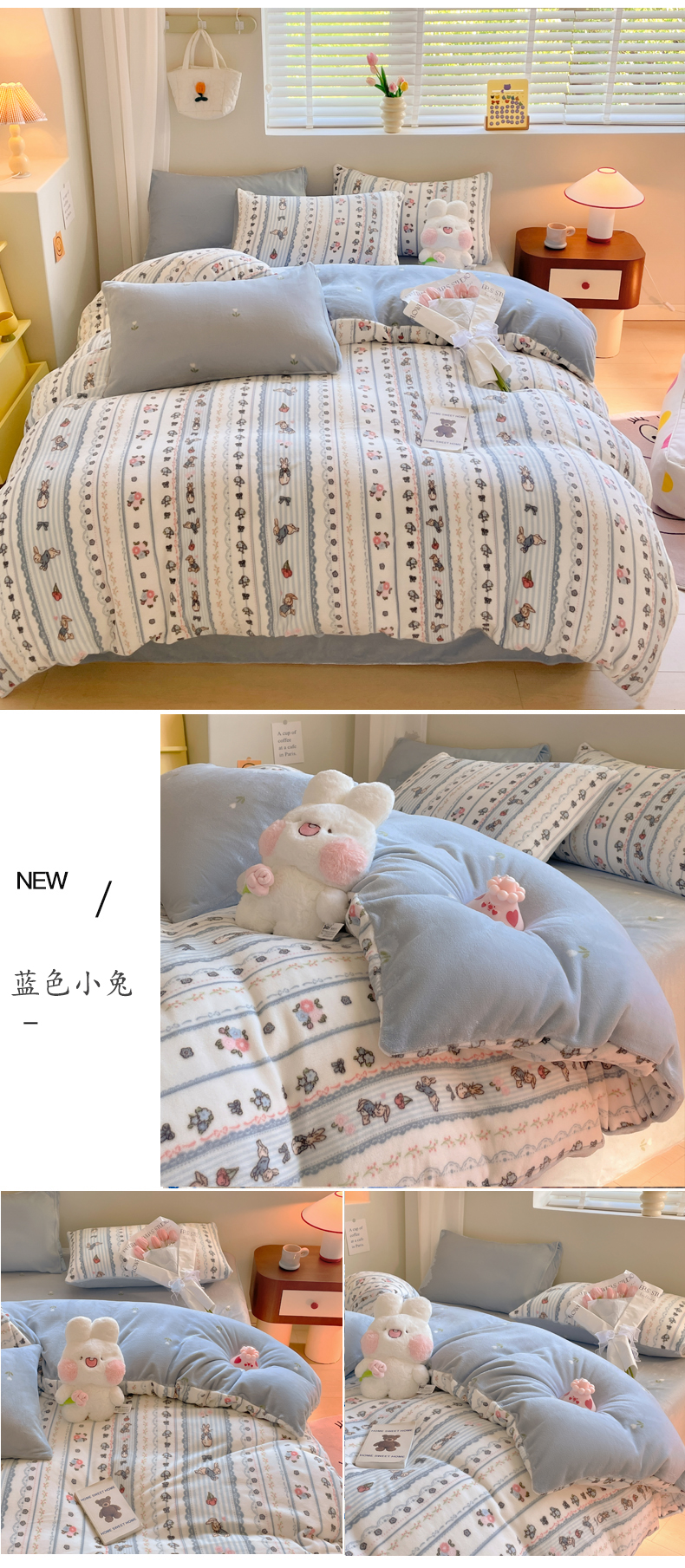 当前位置: 91家纺网 > 商品网购 > 床品套件 > 四件套 > 牛奶绒四件套 > 三朵 2023新款牛奶绒小清新系列四件套 蓝色小兔