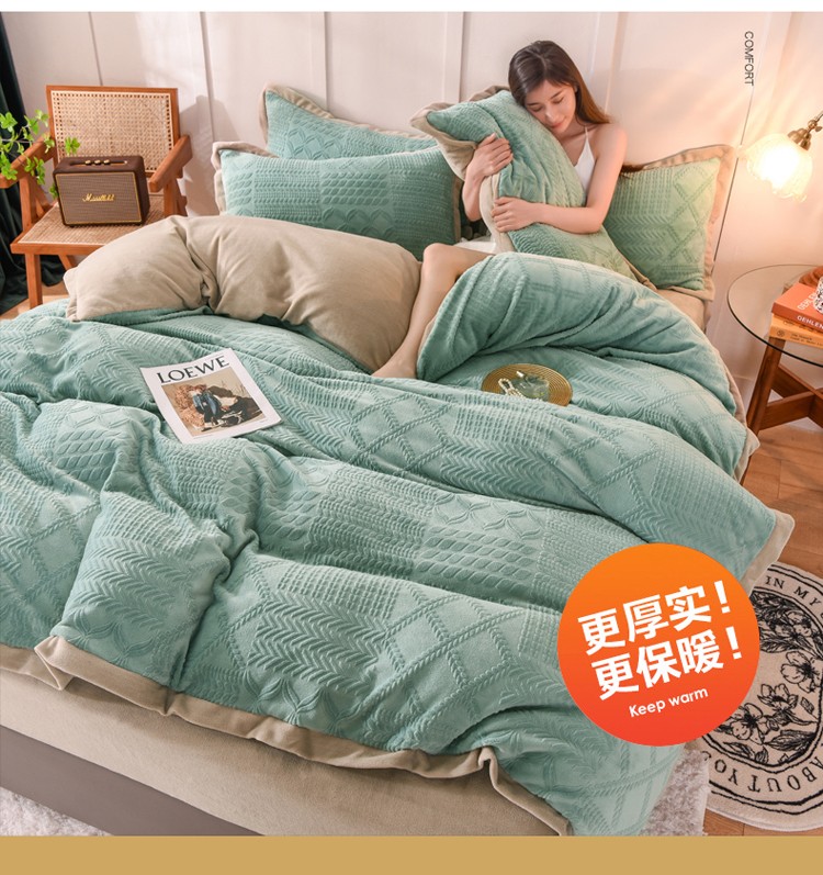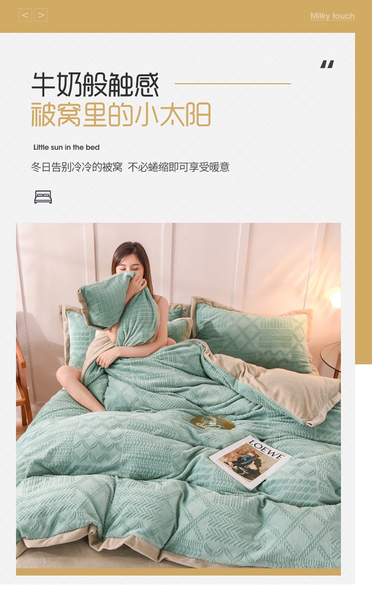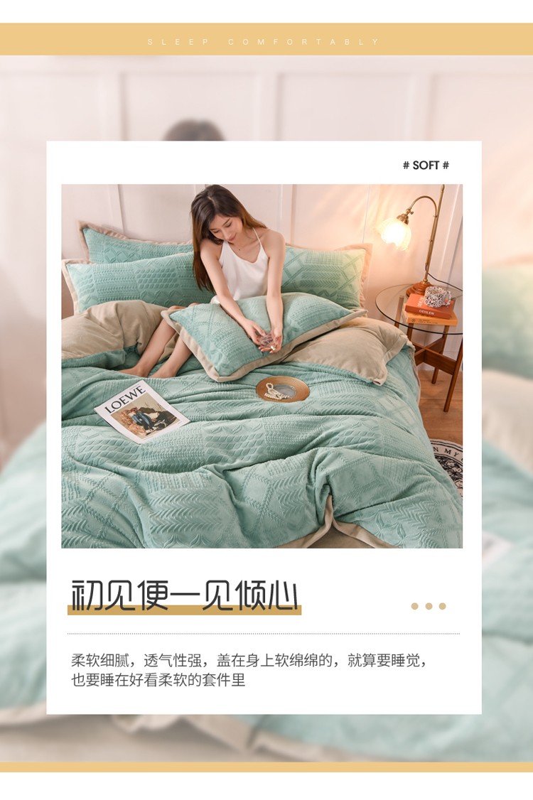 欧冠 2023秋冬新款唯爱雕花A版260克牛奶绒四件套-相机款 唯爱-艾绿