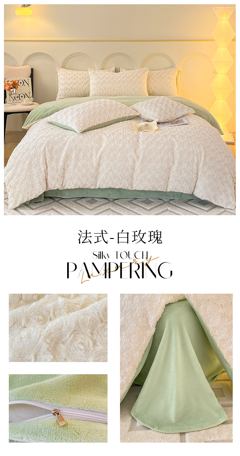 商品名称:蓝米卡夫 2024秋冬A类獭兔毛400克加厚法式玫瑰绒 法式-白玫瑰