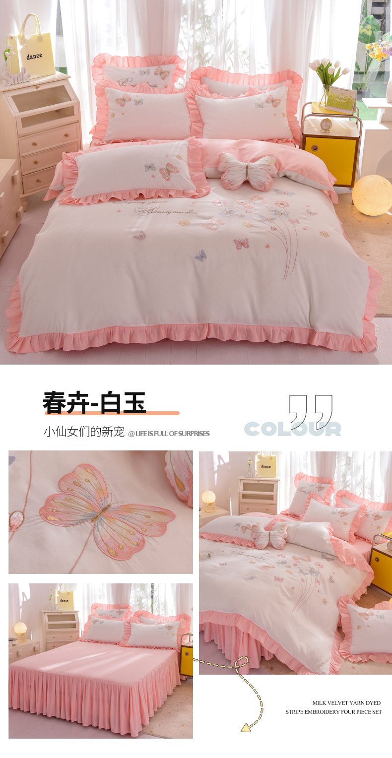 (总)丝印良品 2025新款加厚牛奶绒刺绣床裙款四件套,草莓-奶白粉,草莓-奶白,草莓-湖水蓝,草莓-落樱粉,草莓-薰衣紫