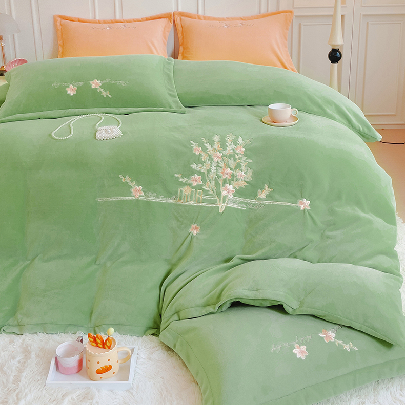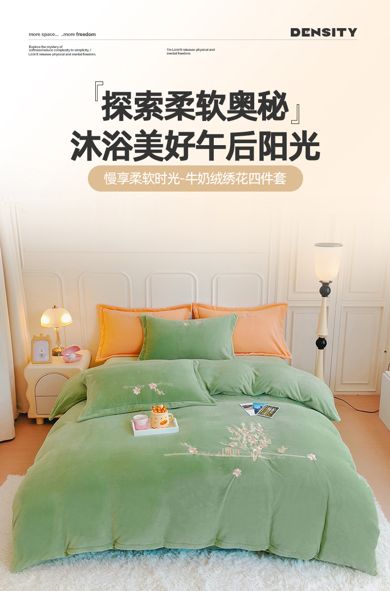 (总)云锦2023秋冬新品全棉磨毛绣花四件套缦芯,缦芯粉,缦芯灰,缦芯橘,缦芯蓝,缦芯紫