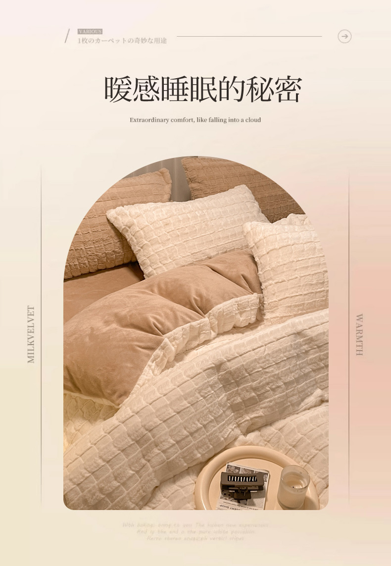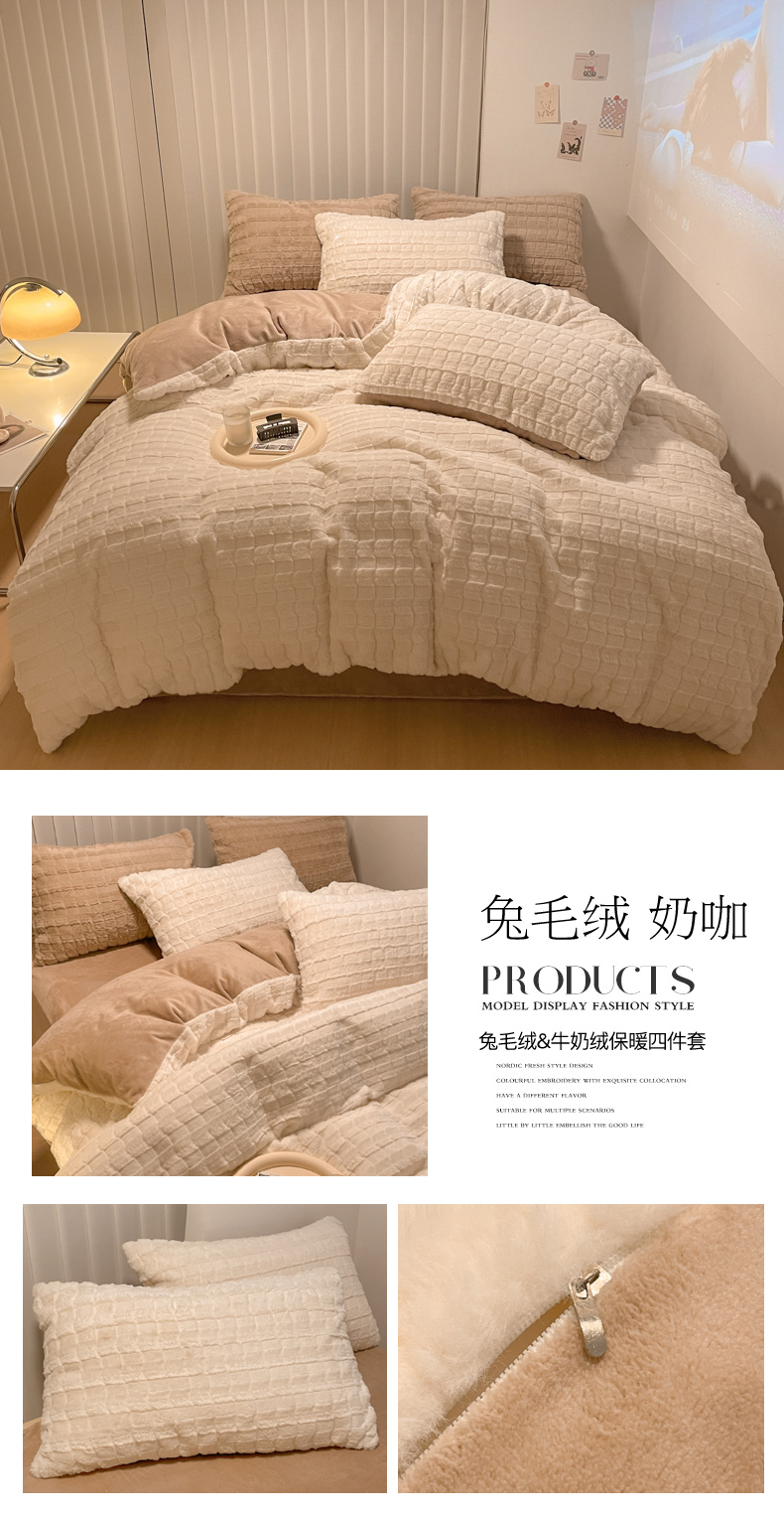 当前位置: 91家纺网 > 商品网购 > 床品套件 > 四件套 > 牛奶绒四件套 > 沐慕 2023新款AB版牛奶绒兔毛绒四件 兔毛绒-奶咖