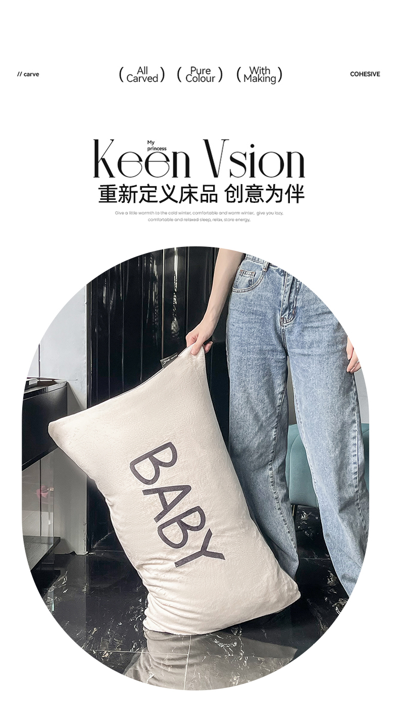 商品名称:潮邦创意家居 2025新款ins数码大版印花牛奶绒枕套单人枕 baby