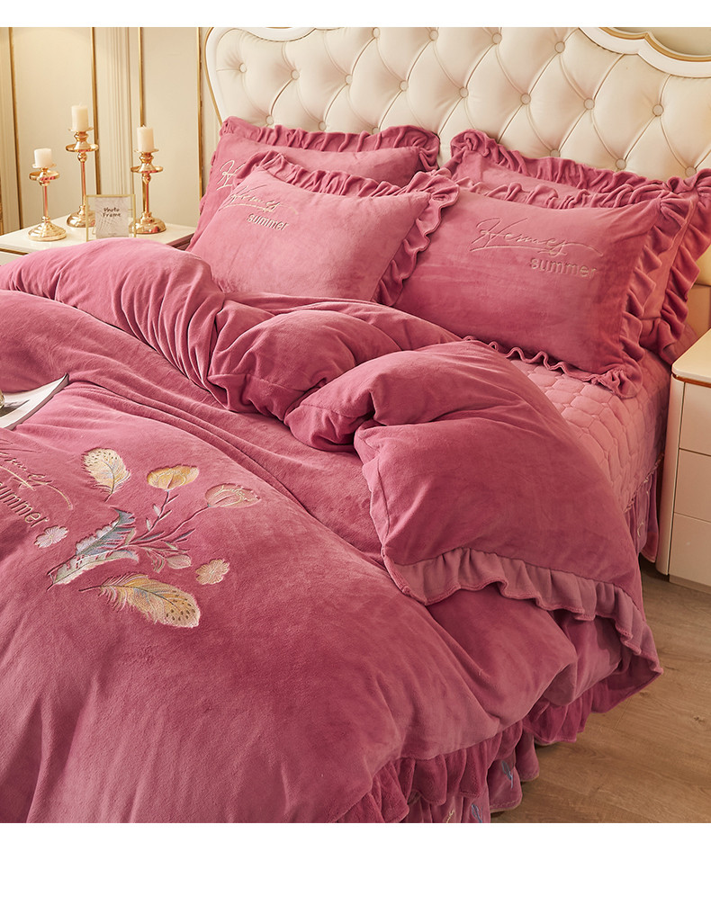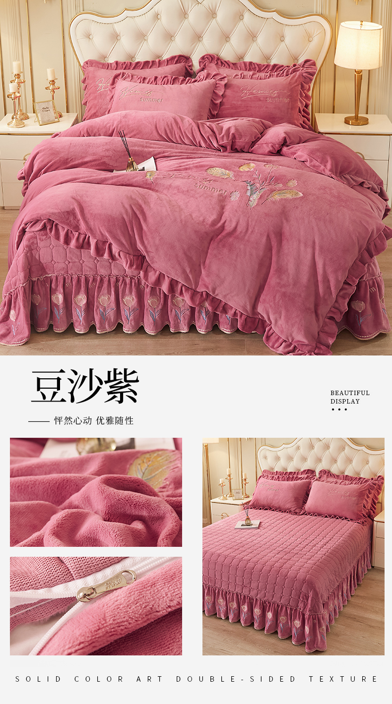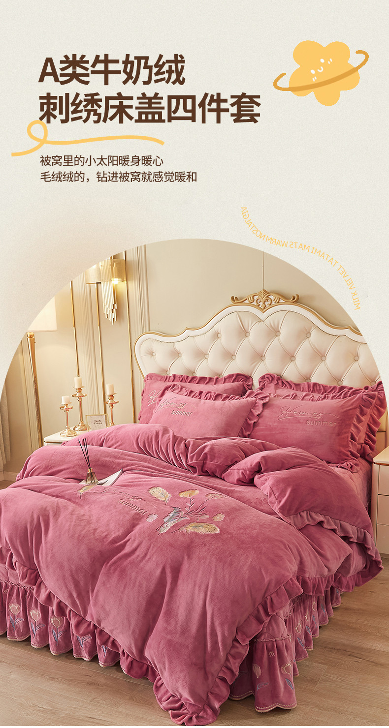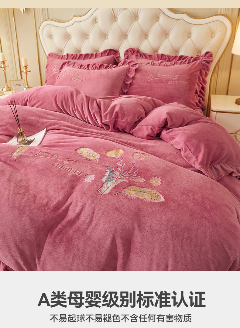 当前位置: 91家纺网 > 商品网购 > 床品套件 > 四件套 > 牛奶绒四件套 > 恒爱 2023新款A类牛奶绒羽毛床盖四件套 羽毛-豆沙紫