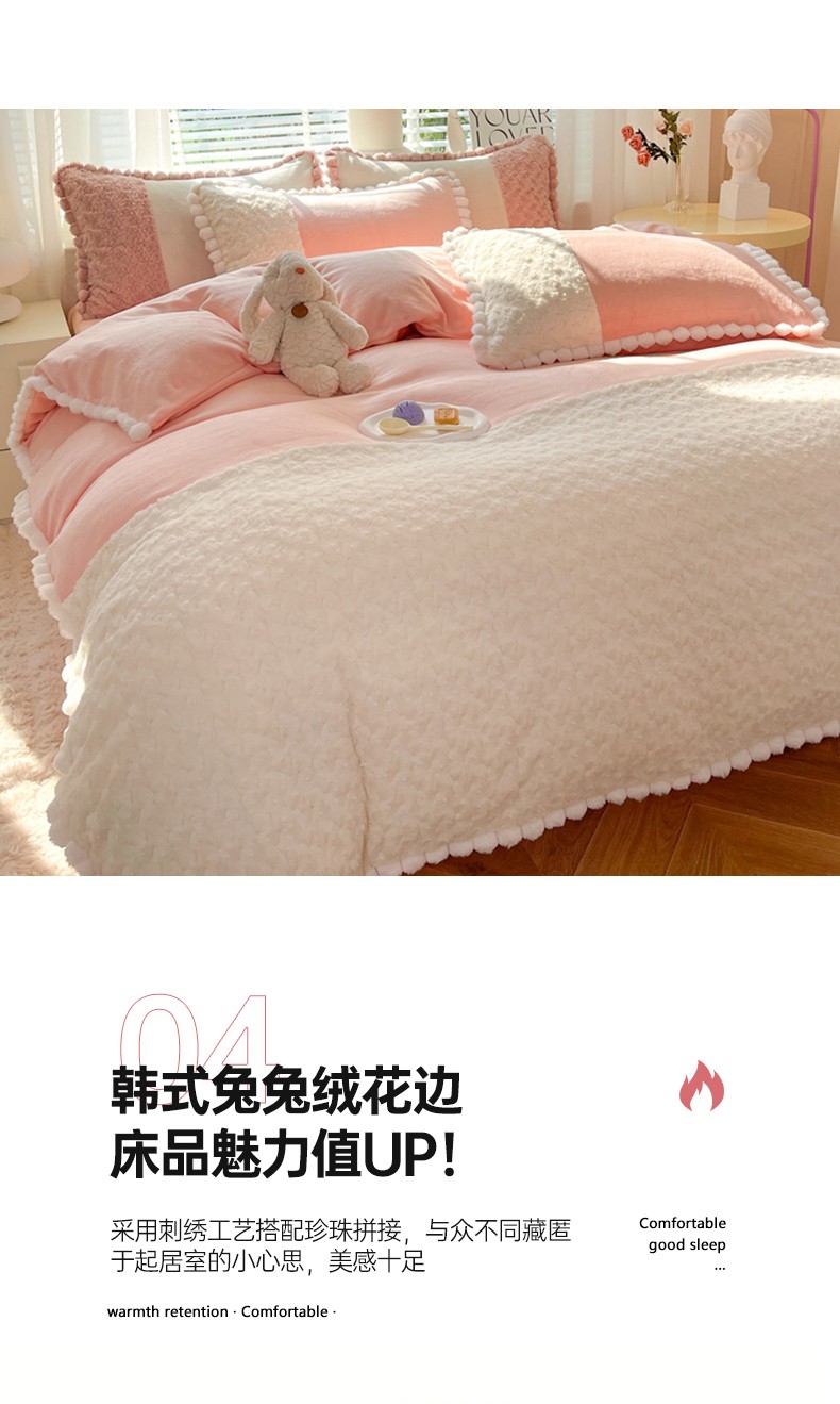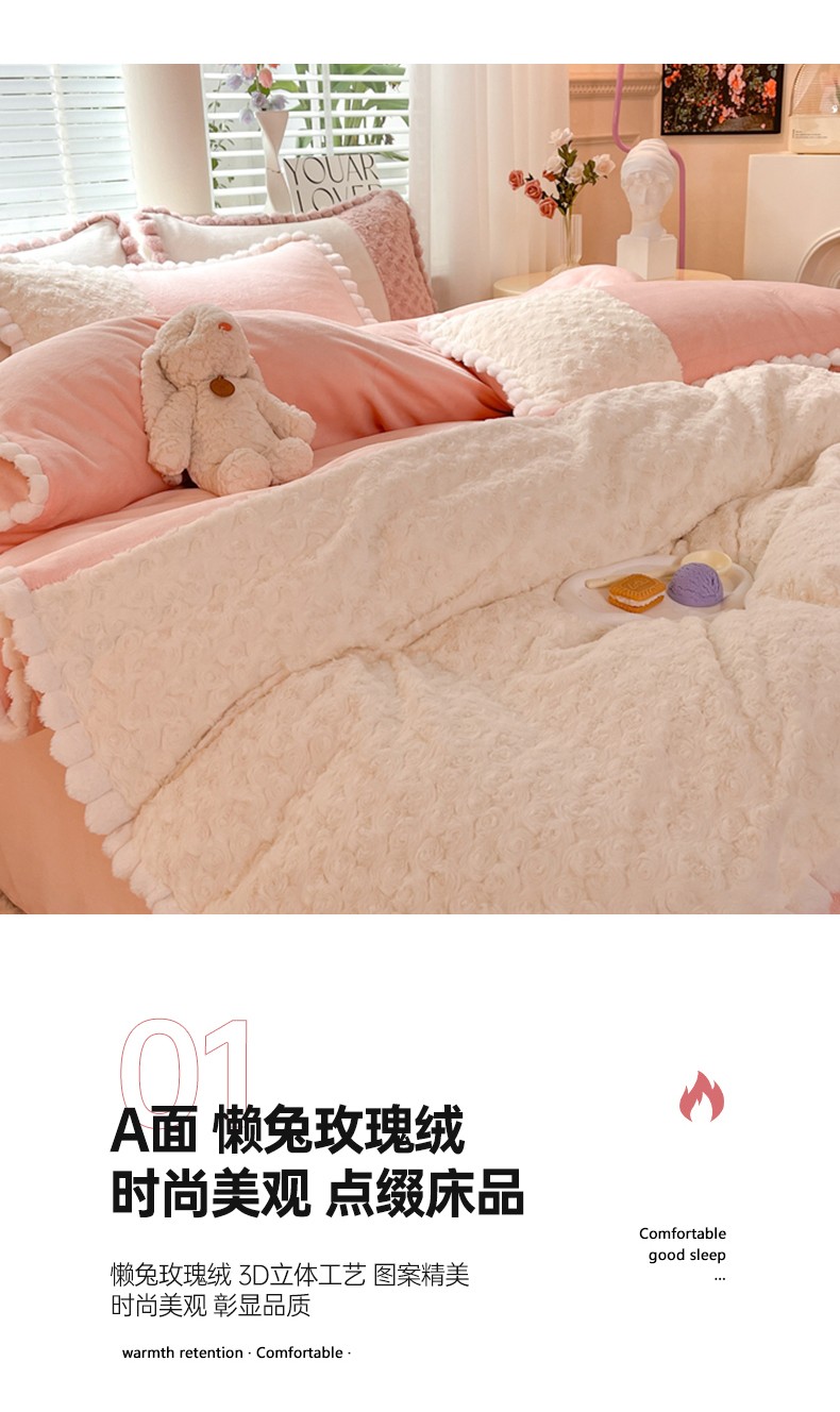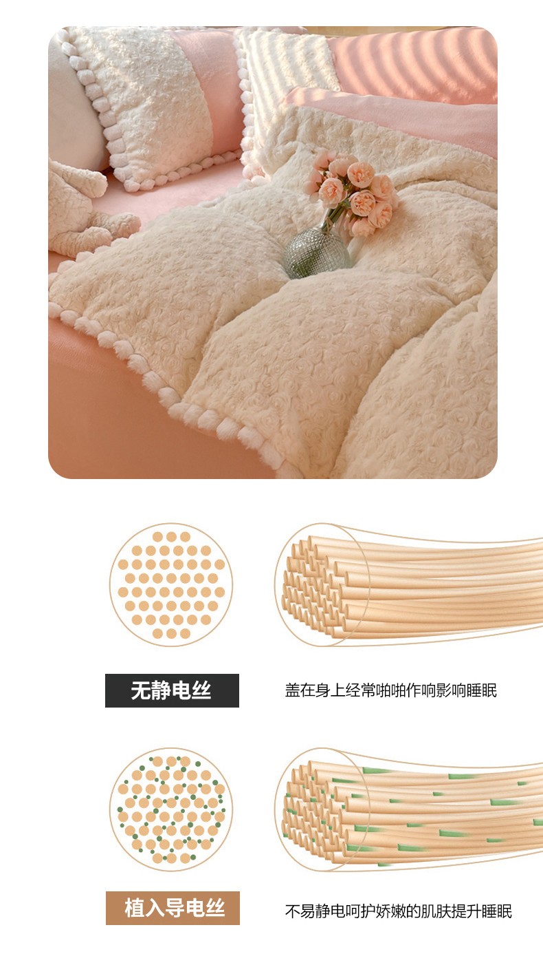 商品名称:艾米家居 2023新款秋冬懒兔玫瑰绒牛奶绒四件套 玉色
