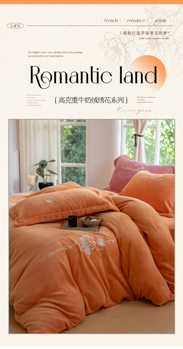 (总)名品优仓 2023新款高克重牛奶绒绣花浪漫玫瑰系列四件套