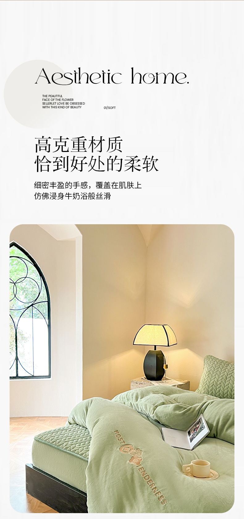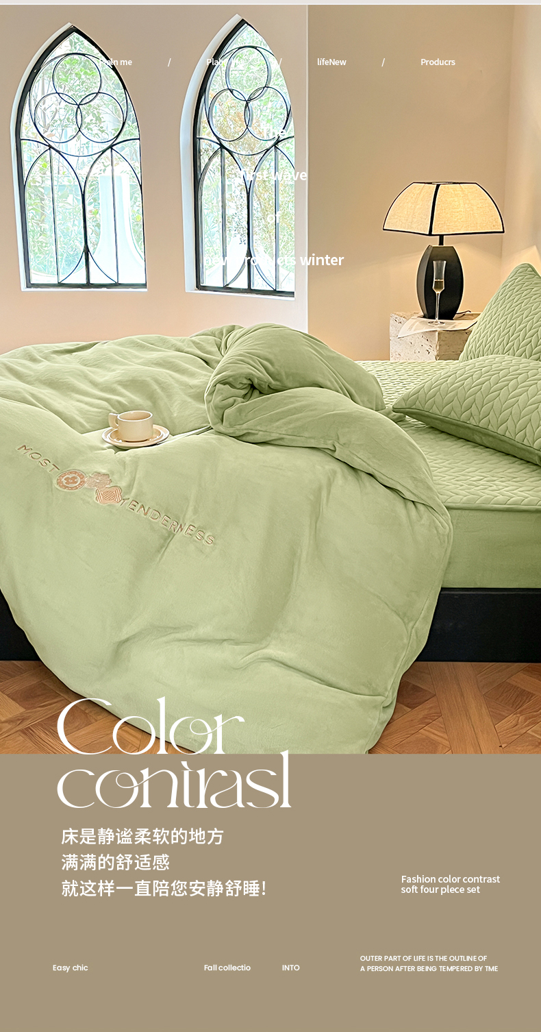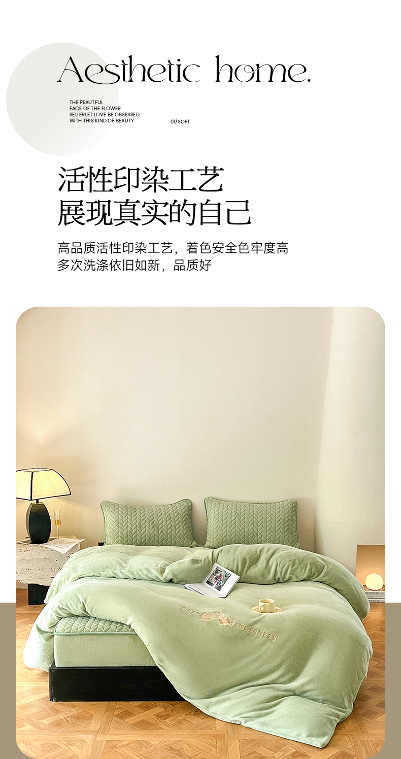 当前位置: 91家纺网 > 商品网购 > 床品套件 > 四件套 > 牛奶绒四件套 > 欧邦 新款轻奢牛奶绒刺绣四件套 芥末绿
